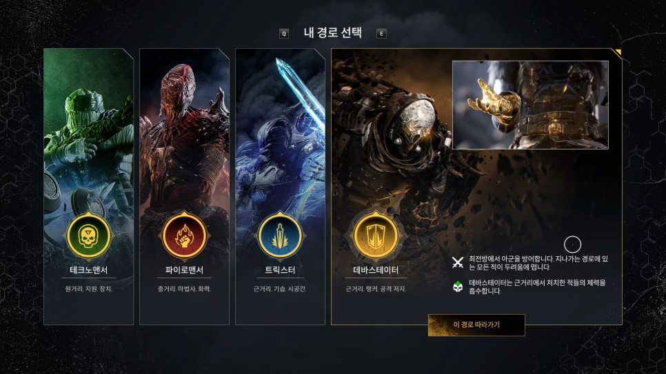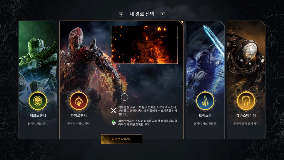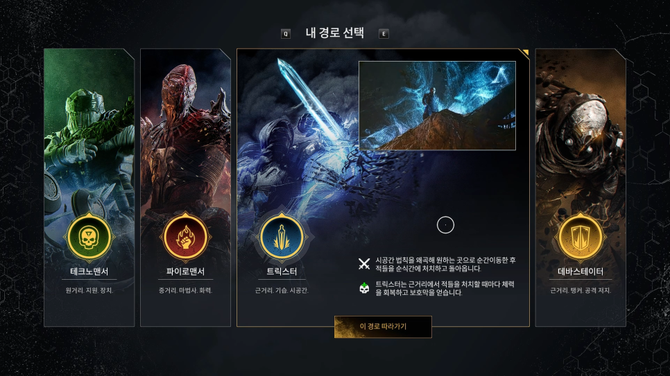 이때부터 4가지 클래스를 선택하여 진행하실수있고