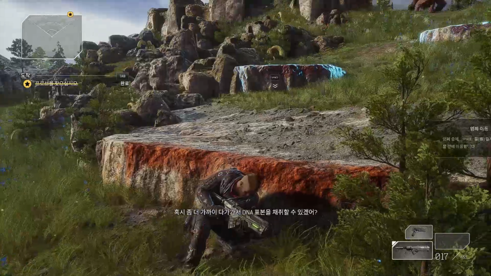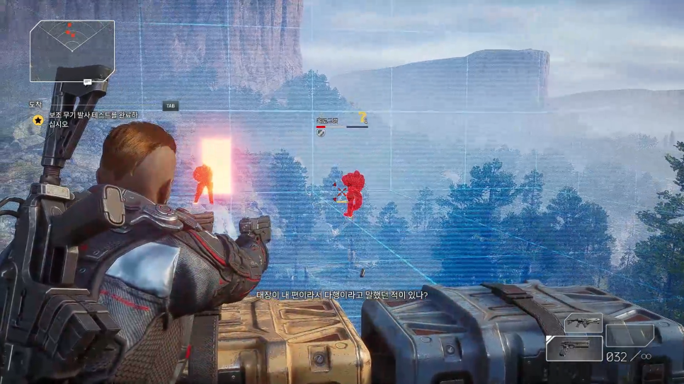 앞쪽에보이는 엄폐물을 조준하고 (스페이스바)를 눌러