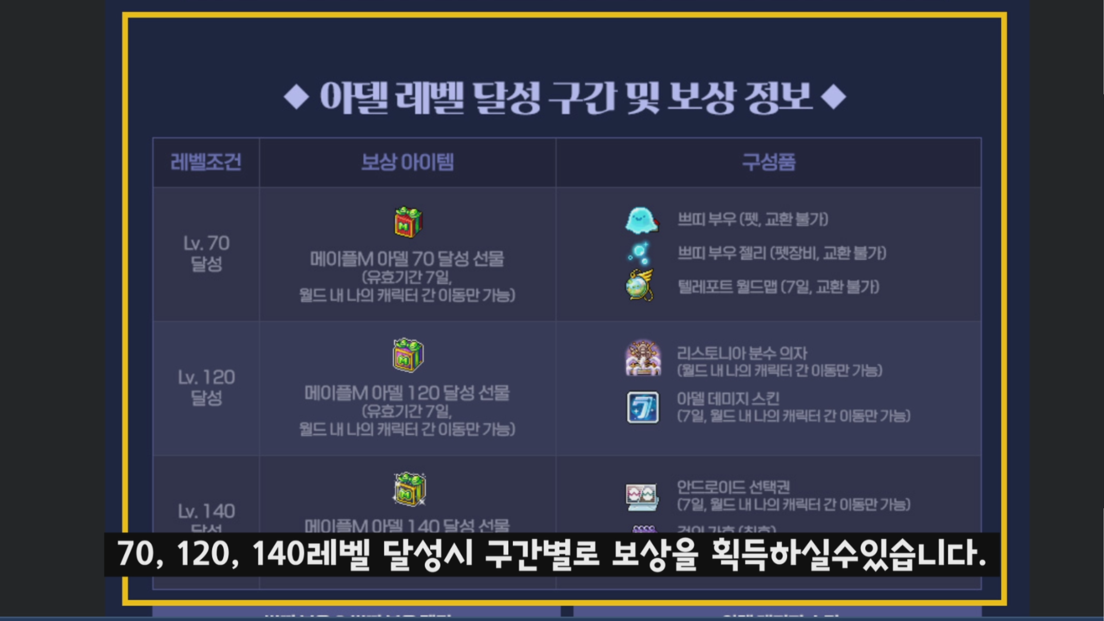 메이플스토리M 아델 레벨 달성 이벤트 아델 레벨 달성 이벤트