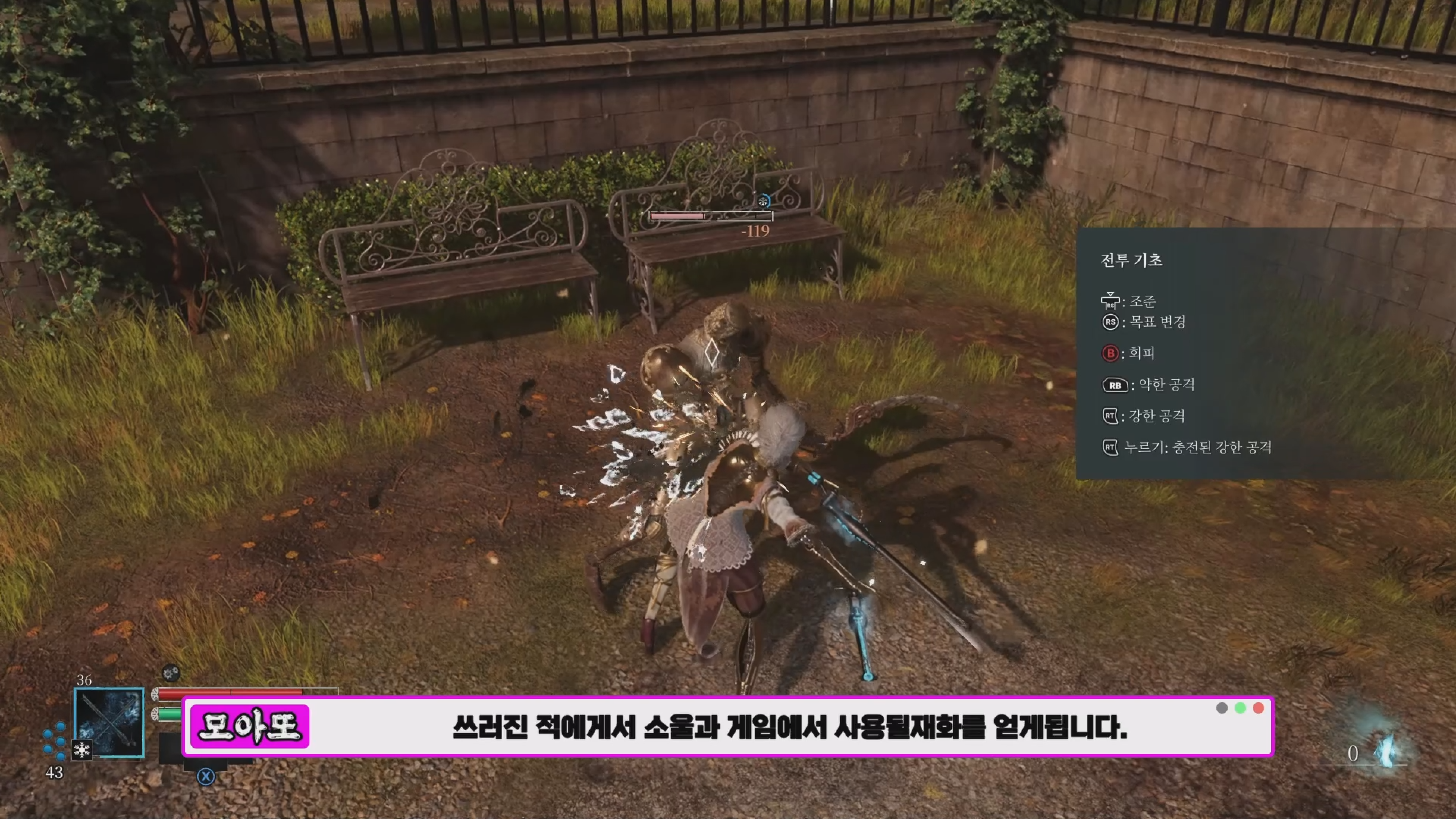 전형적인 소울라이크류라고 하기엔 약간 부족한 전투, 피하고 떄리고 박진감은 많이 없는수준...