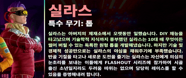 높은 속도와 높은 위험이 만나는 곳. 자비없는 전투, 신나는 일렉트로닉 음악, 중독성 있는 아드레날린 부스트가 뒤섞여 승자와 패자를 가르게 됩니다. 이곳에선 중력은 공허한 말과 같습니다. 흥미 진진한 일대일 싸움에 참여하여 결승점에 도달하십시오! 이곳에서 FLASHOUT 3의 세계가 당신과 당신의 라이드를 한계까지 데려갈 것입니다!