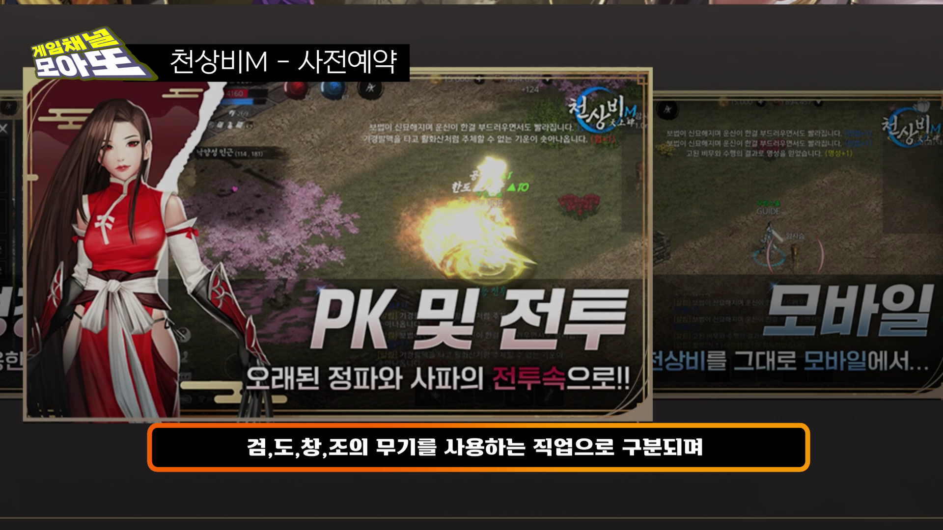 추억의 천상비! 모바일로 출시예정입니다. 검,도,창,조등의 무기를 사용하는 직업으로 분류되고 팔괴 시스템으로 경험치와 능력치등을 올리게됩니다. 실시간 성장시스템으로 캐릭터를 육성하고 사전에약을 통해 다양한 보상과 SNS공유 이벤트를 통한 갤럭시 탭 S8도 노려볼수있습니다.