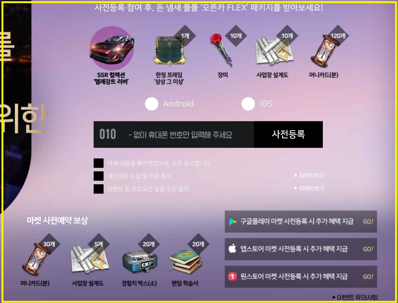 플레이 스토어, 앱스토어, 원스토어를 통한 앱마켓 사전예약을 통해 추가적인 보상도 받아보실수있으니 관심있으신분들은 챙겨두시면 좋을것같습니다.