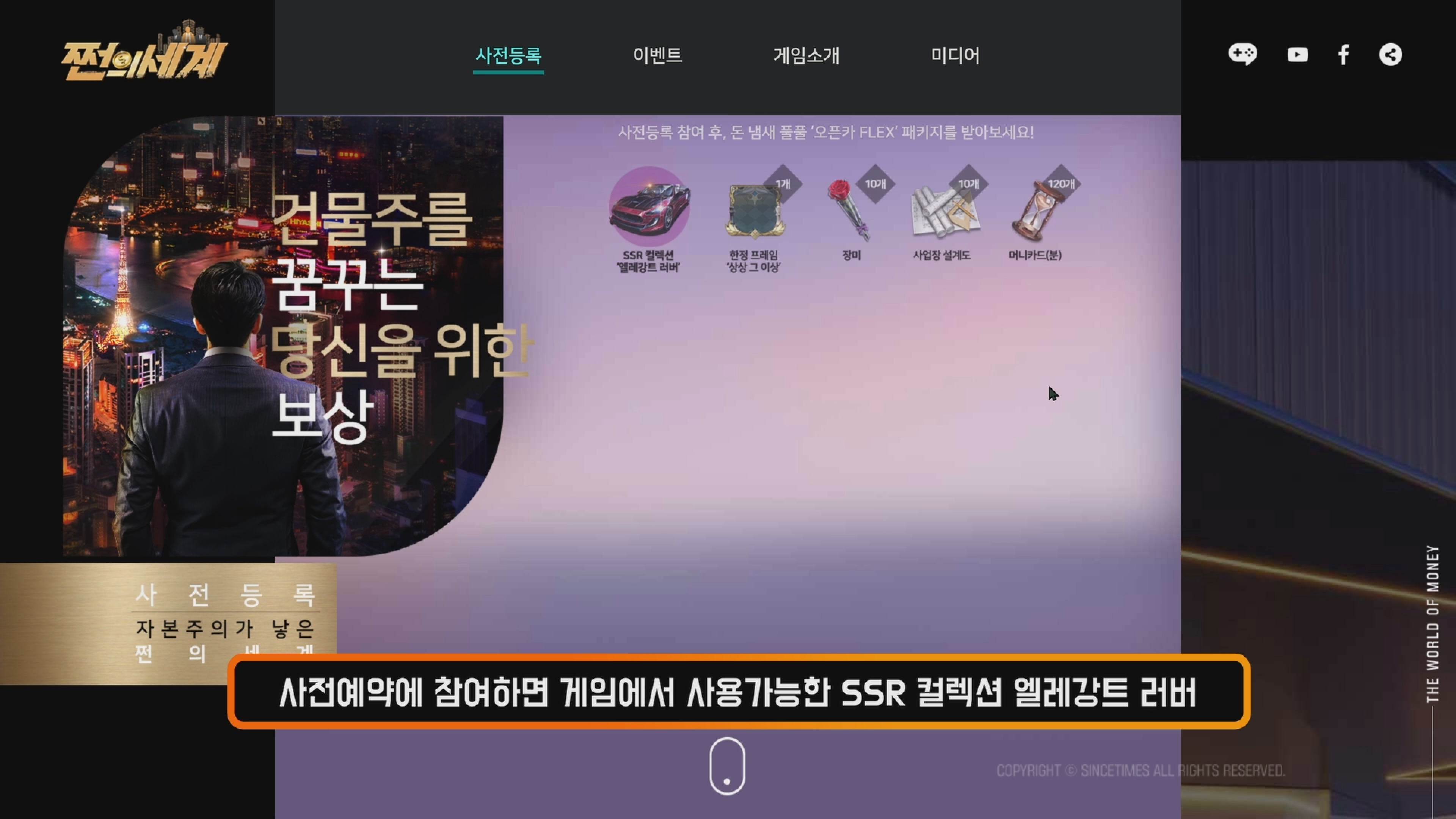 누구나 꿈꾸는 금수저의 삶, 게임으로 즐겨보실수있습니다. 1%의 금수저가 되어 건물을 구입하고 슈퍼카를 모으며 벌어들인 돈으로 원하는 곳에 사용해볼수있고, 부자들과의 인맥을 쌓아가며 금수저의 삶을 경험해볼수있는데요. 사전예약을 진행중이며 브랜드 페이지를 통해 다양한 이벤트와 게임 소개등도 확인해보실수있습니다.