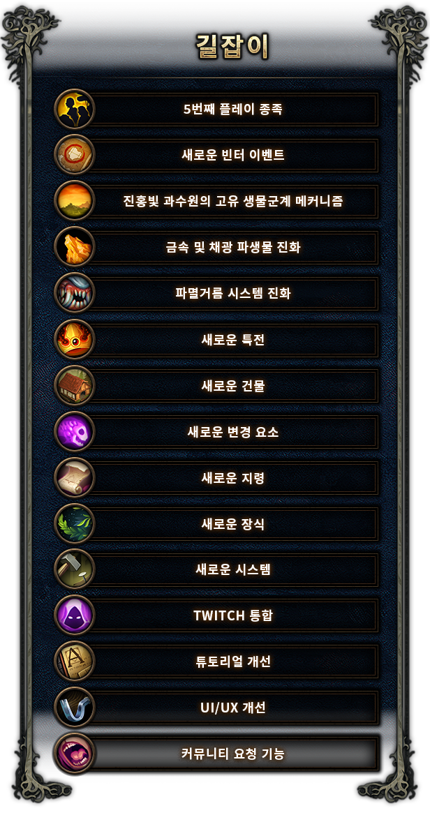 비버와 도마뱀, 인간과 하피는 생존을 위해 함께 고군분투하고 있습니다. 각 종족의 강점을 활용해 주거와 음식 선호도에서 호화품과 여가 취향까지 다양한 필요를 충족시켜야 합니다. 우비를 생산하고, 에일을 빚으며, 파이를 구워 숲의 적의로 억압받는 주민의 사기를 진작시켜 주세요.
