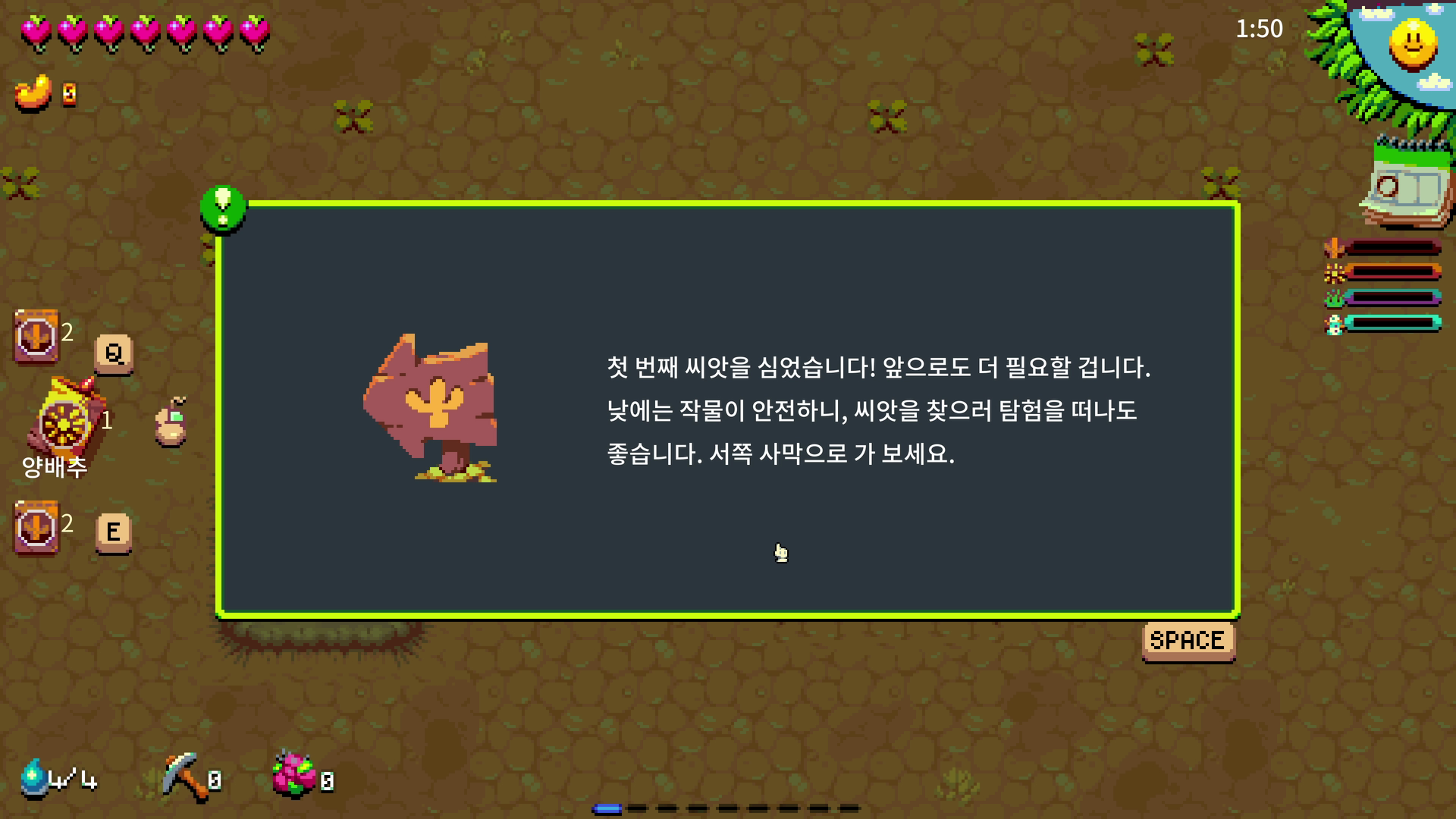농장 경영. 결혼. 끝장. Atomicrops는 포스트 아포칼립스 황무지에서 최후의 농장을 경작하고 수비해야 하는 게임으로, 액션으로 가득 찬 던전 탐색 농장 경영 시뮬레이션입니다. 돌연변이 작물을 재배하고, 마을 사람들과 결혼하고, 침략해오는 변종 생물을 모두 끝장내세요!