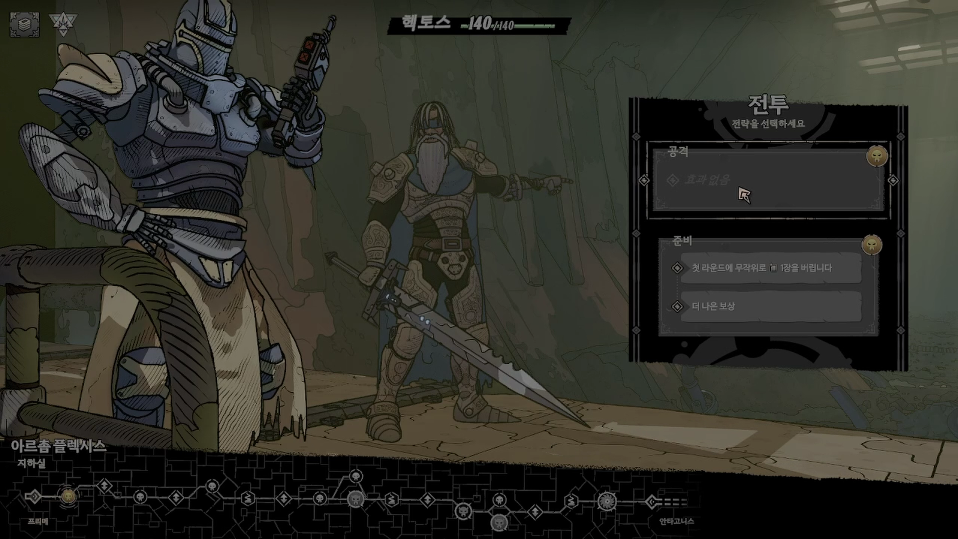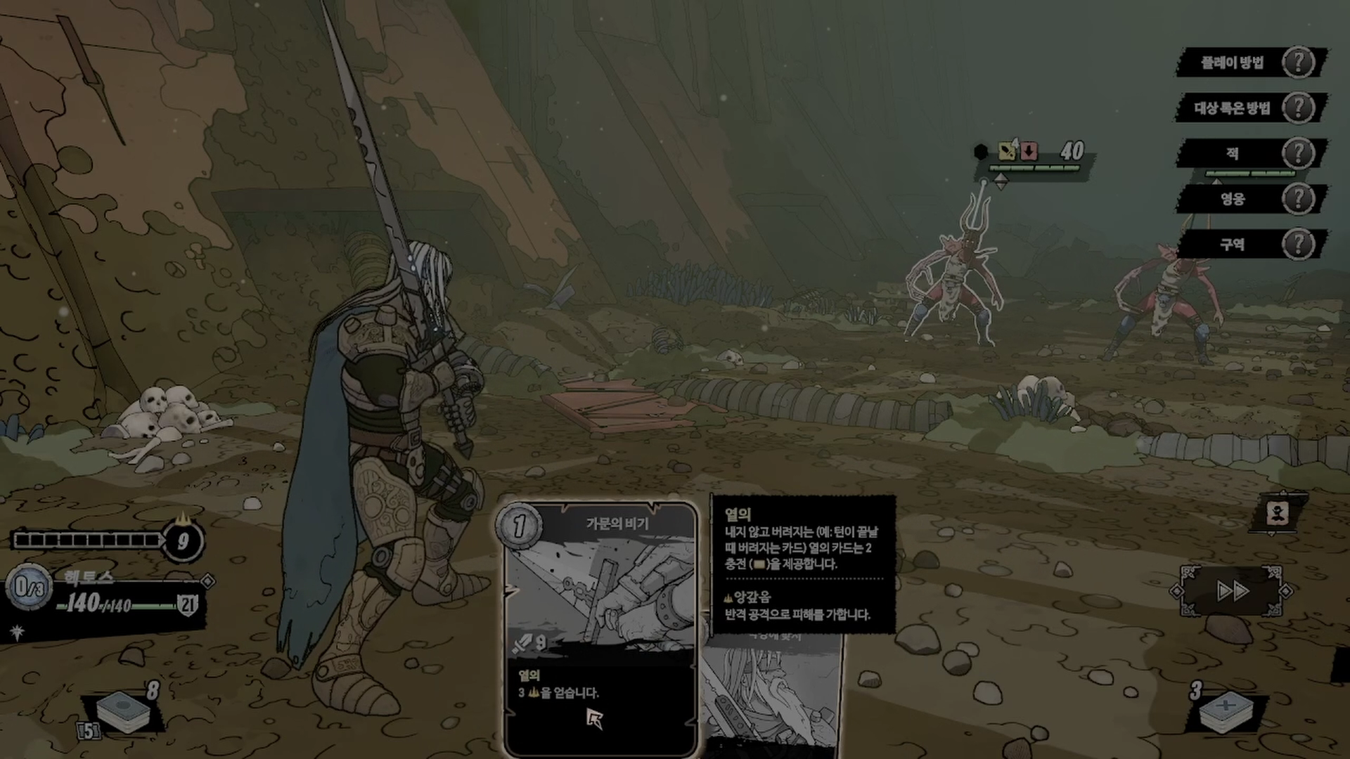 덱빌딩 게임에서 전투 연출은 다양하게 접해봤으나 이번 작품의 연출이 꽤나 만족스러운 편입니다. 덱을 선택하면 바로바로 반응하는 연출도 시원시원하고 꽤나 정교한 전투장면이 덱빌딩의 재미를 한층 높여주는듯했습니다.