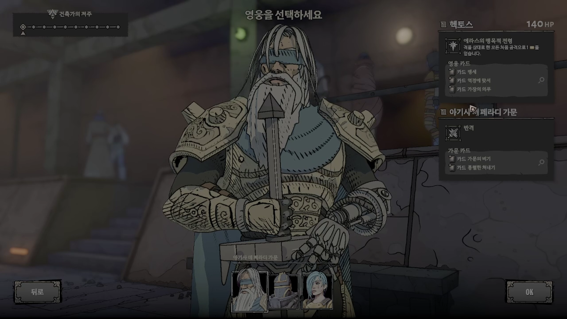 영웅을 선택하세요. 동료를 선택하세요. 카드를 선택하세요.