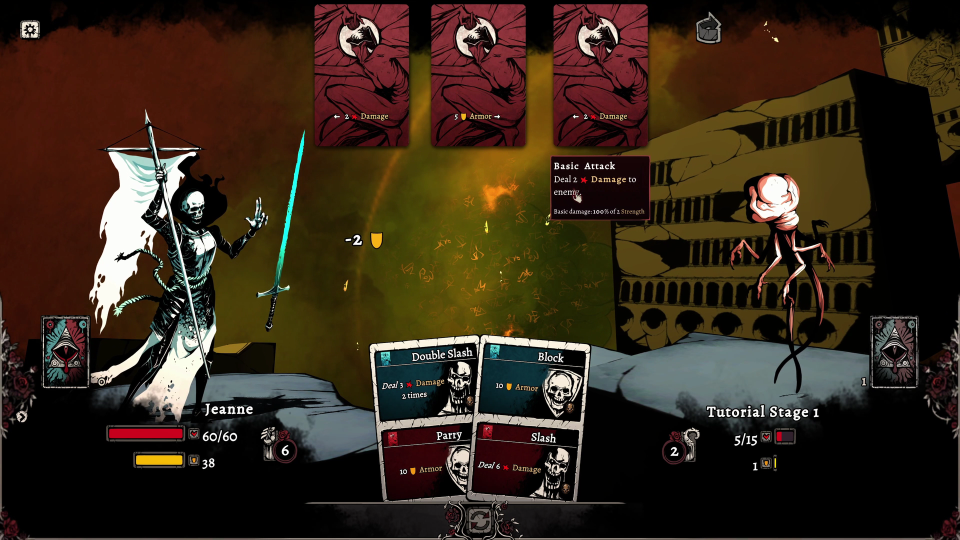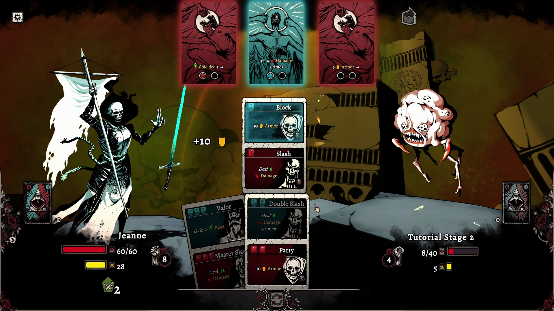 적의 반응에 따라 반응하는 덱빌딩 로그라이크 게임입니다.