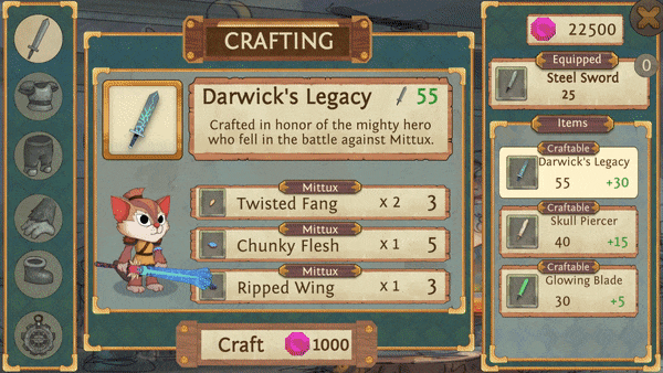 - 10종의 유니크 아머 세트와 20종의 유니크 무기를 제작하세요