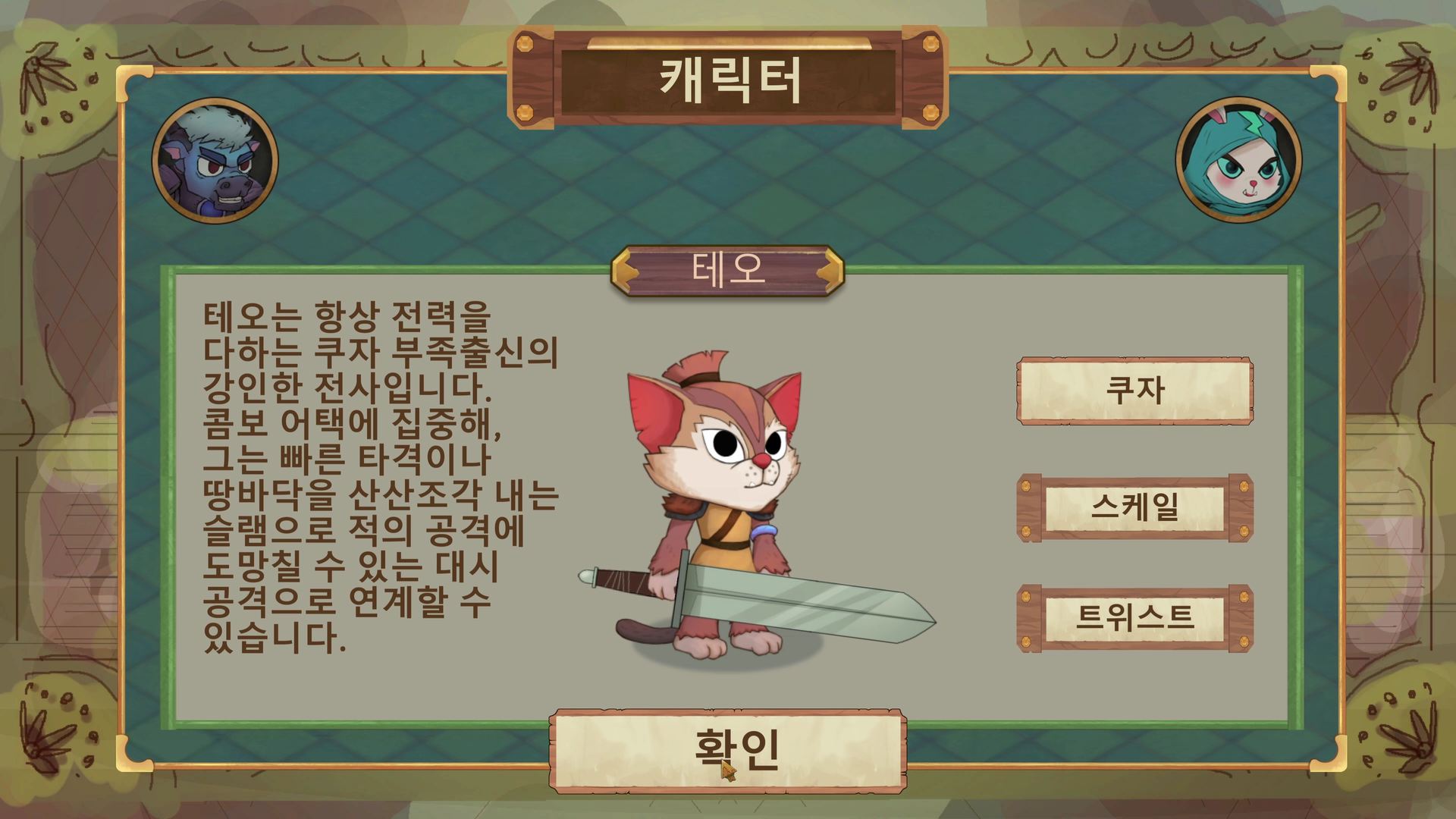 - 각각 고유한 공격과 콤보 기술이 있는 세 가지 다른 캐릭터를 선택하세요