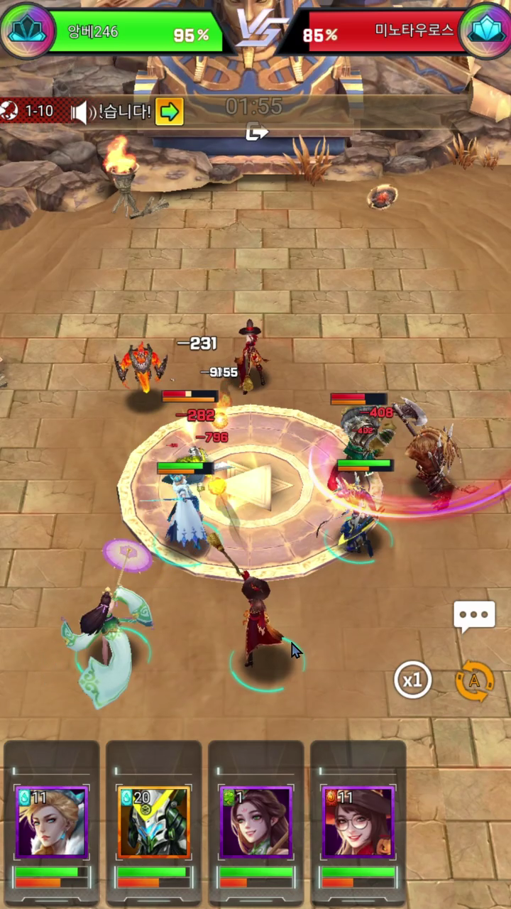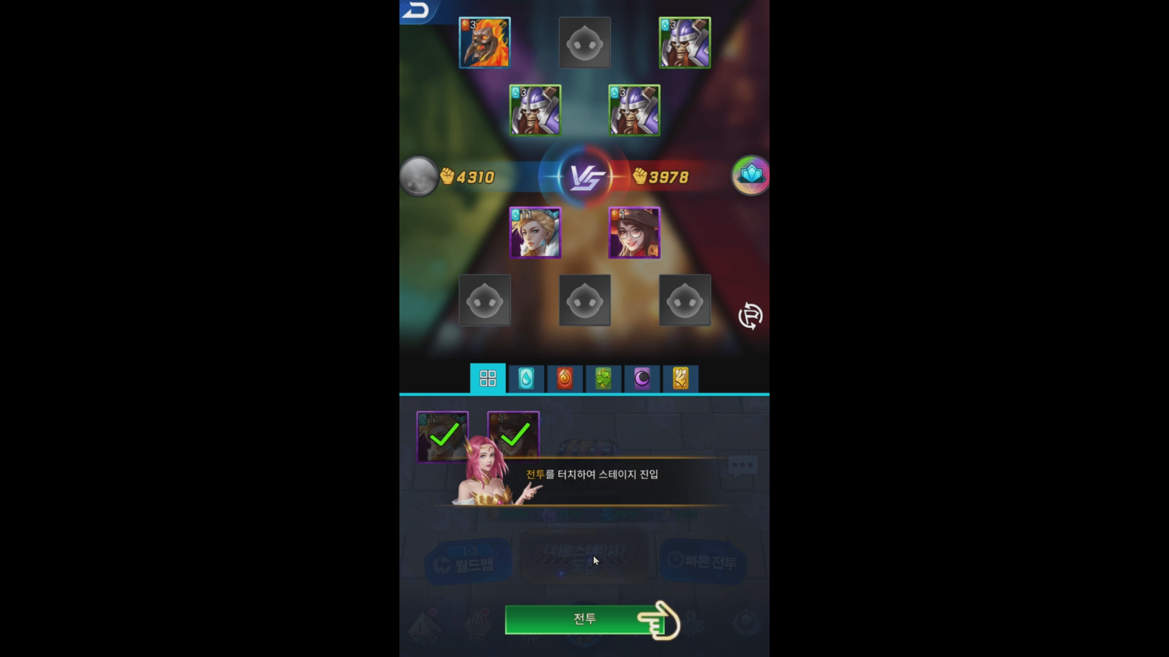 영웅의 배치와 속성이 존재하기에 탱커와 딜러 지원형 등의 배치를 통해 더 좋은 시너지를 낼수있는 팀 조합을 꾸려 플레이하게되면 한층 강한 면모를 보이게됩니다. 무작정 배치하지말고 어떤 방식으로 배치하고 전투해야 더 좋은 시너지를 낼지 생각하며 플레이하여야합니다.
