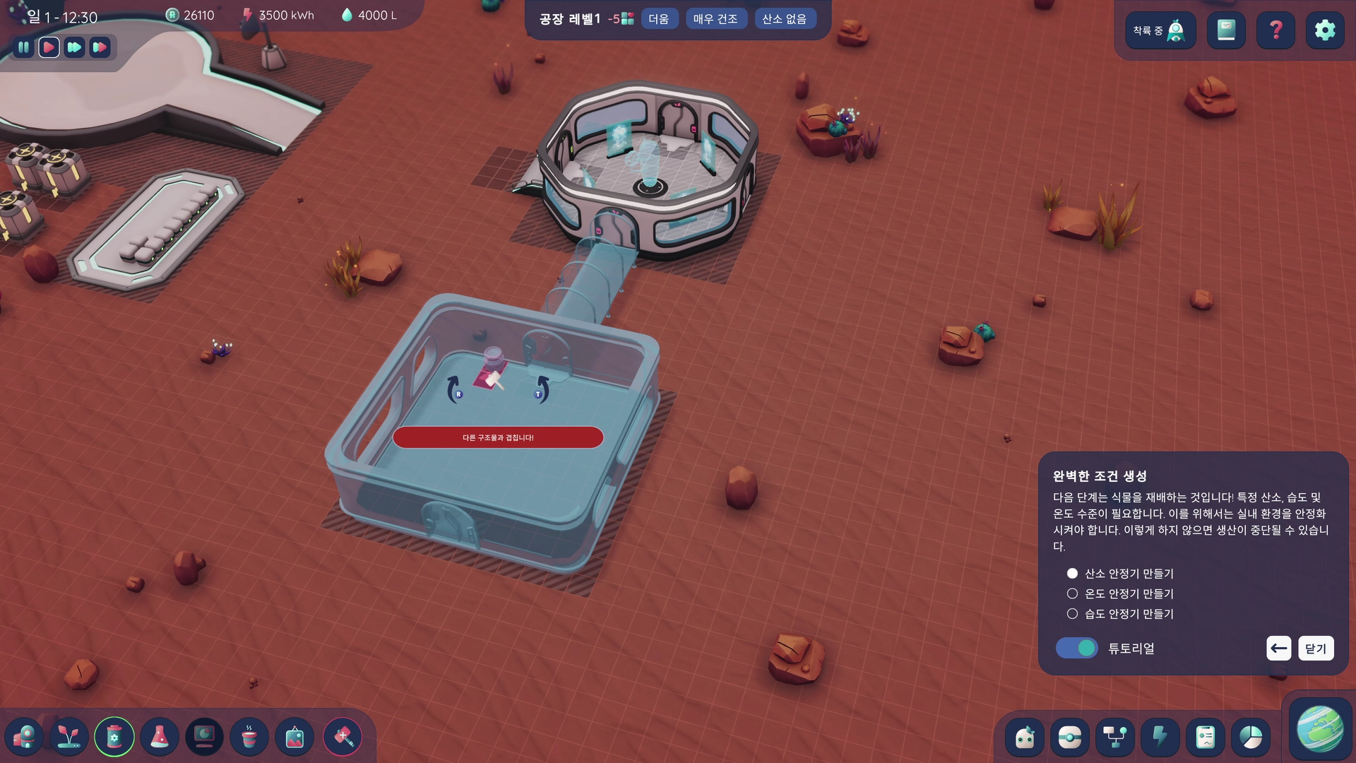 새로운 행성에 도착했으므로 공장을 하나씩 건설해야 합니다. 방과 복도를 만들고 수경 재배 기계, 실험실 장비 및 장식을 추가하여 정착지에 생기를 불어넣고 사업을 시작하십시오.
