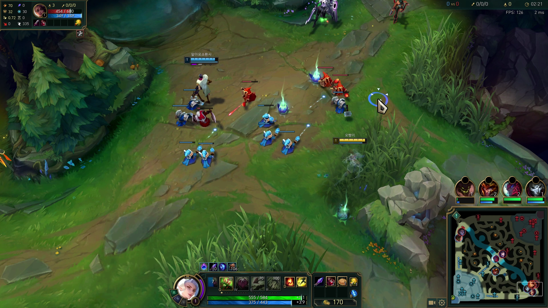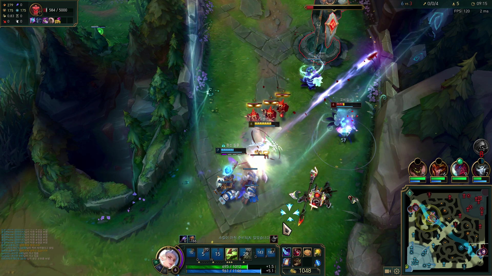 보통 식물을 깔고 궁을 쓰면 식물이 광폭화가되어 강력해집니다. 우선적으로 슬로우를 묻히는 E 스킬을 사용하면서 식물을 깔아도되고 상황에따라선 QW-QW-R도 좋습니다. 중요한건 식물을 최대한 깔아주고 궁을 쓰는것!