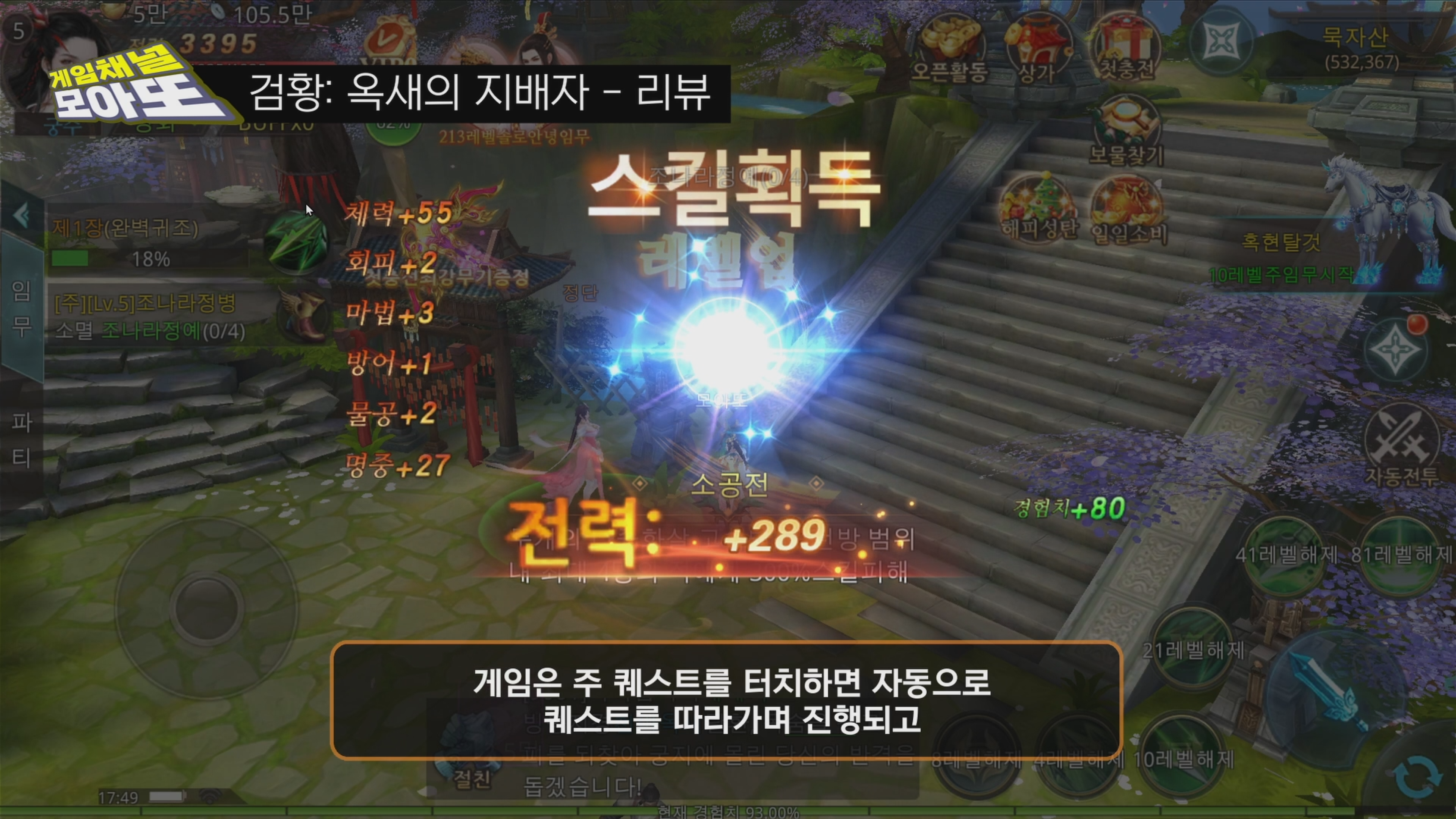 게임 진행은 주 퀘스트를 터치하고 쭉 자동으로 진행되는 스타일이며 습득한 아이템이나 스킬을 확인만 눌러주면 자동으로 착착 진행이되고 레벨업이 쑥쑥됩니다. 거기에 따로 시점 전환이 되지 않아서 조금 아쉬운 부분이랄까요?