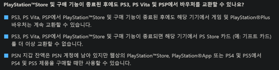 스토어가먼저 종료되고 함께 PSP 구매기능도 종료됩니다