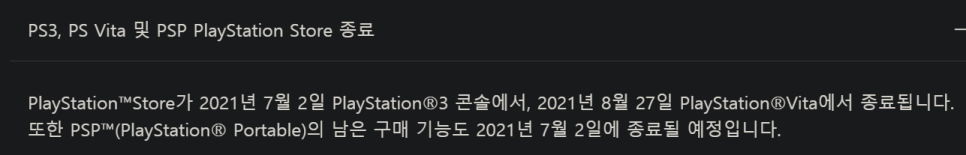 2021년 8월 27일 플레이스테이션 비타 스토어또한 종료되며