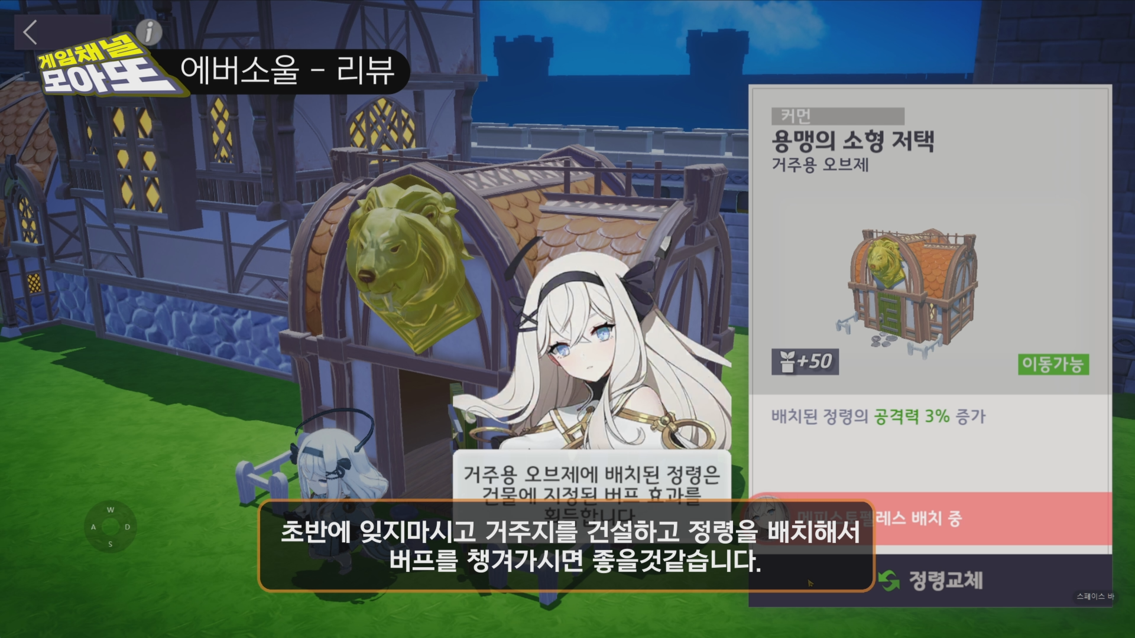 에버소울엔 영지가 존재하고 영지내 사유지로 이동해서 거주지를 짓고 정령을 배치하면 버프를 받게됩니다. 초반에 그냥 건너뛸수도 잇으니 챙겨서 진행하시고 플레이하시기바라며 영지내 다양한 콘텐츠가 존재하고 보상도 주어지므로 밤과 낮에 따른 퀘스트도 챙겨서 진행해주시기바랍니다.