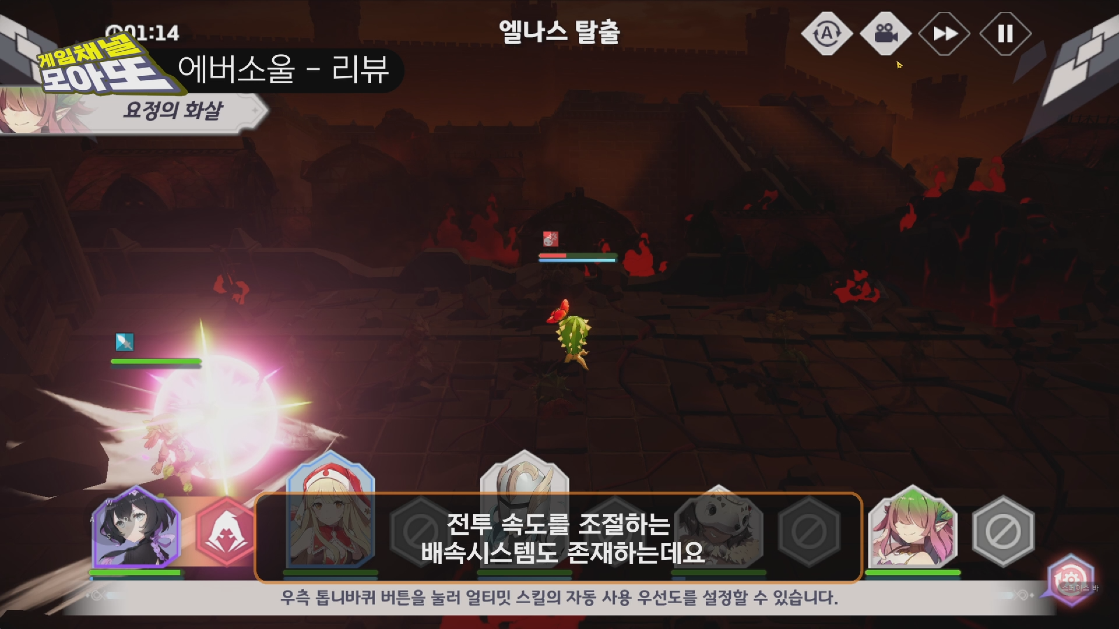 전투속도 조절도 초반부터 가능해서 좋았는데요. 처음엔 2배속만 있는줄알고 한번만 누르고 게임을 했는데 한번더 눌렀더니 3배속도 가능하더군요. 근데 너무 빠르게 게임이 흘러가면 전투를 보는 맛이 떨어지기 때문에 2배속이 적당해 보였구요. 시간이 아깝거나 빠른플레이가 좋다면 3배속을 사용하시면됩니다.