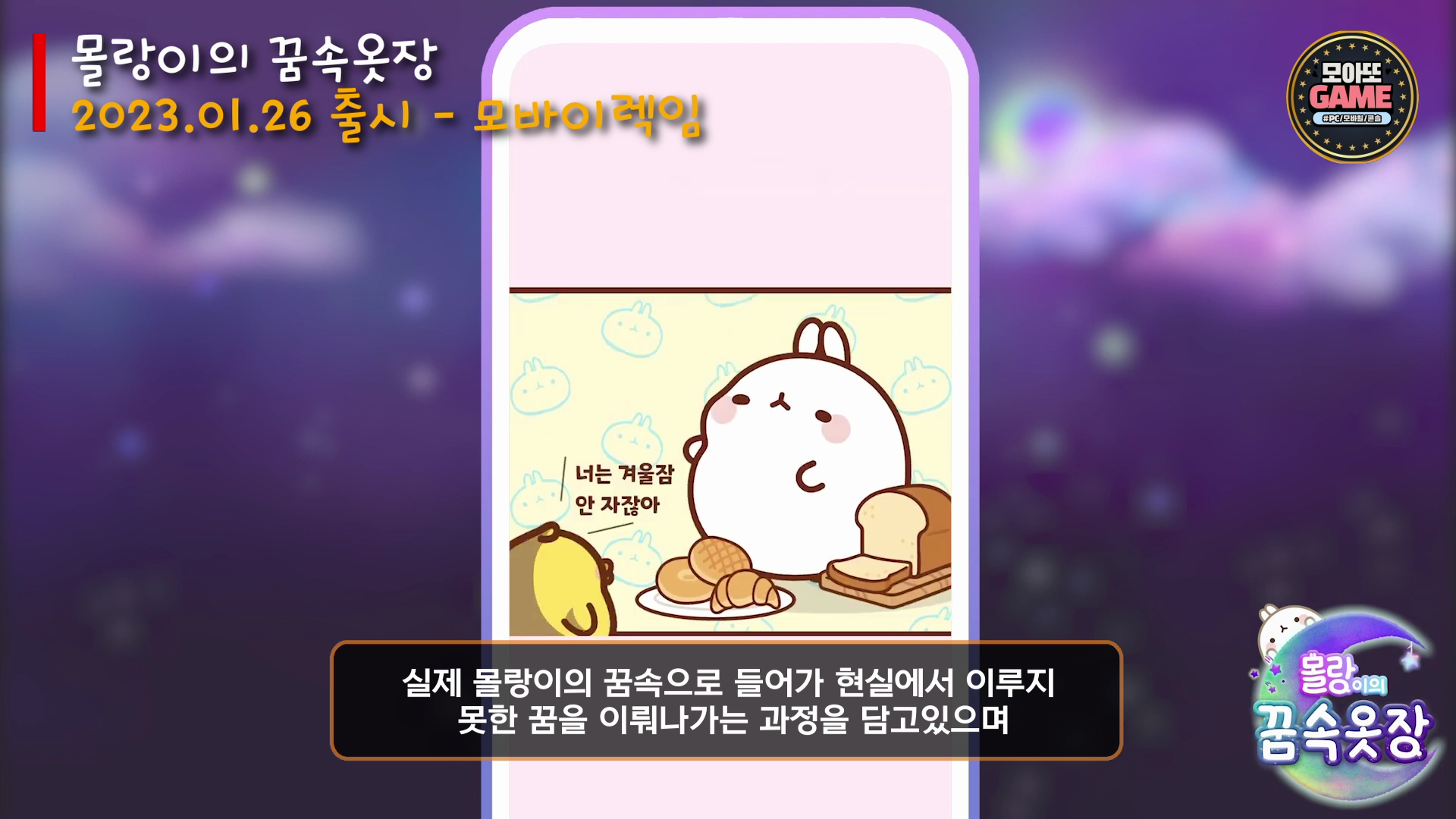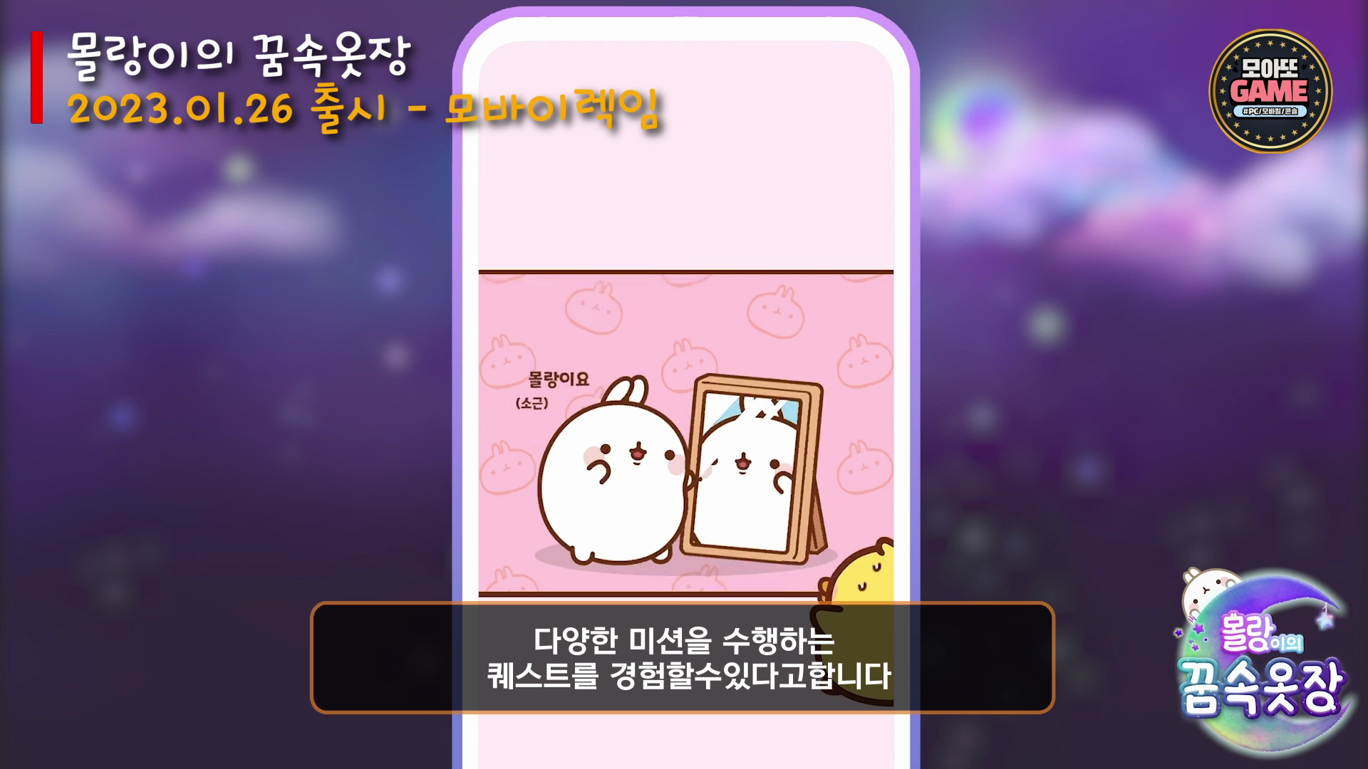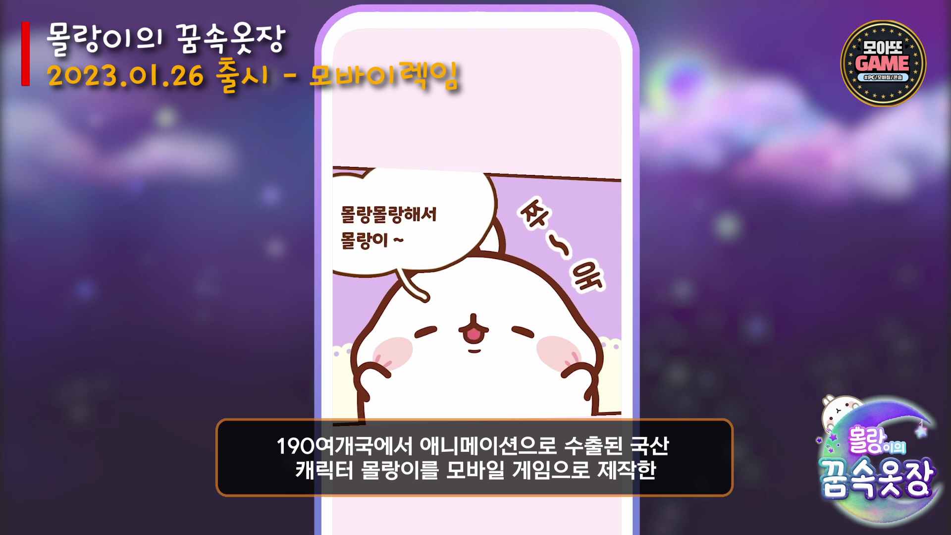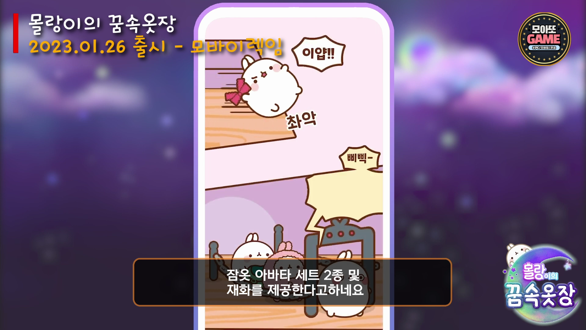 인기 캐릭터 몰랑이 IP를 활용한 몰랑이의 꿈속옷장이 모바일 게임으로 출시됩니다. 2023년 1월 26일 정식 런칭예정이며, 구글과 원스토어 사전예약자에게는 잠옷 세트도 지급한다고하네요. 꿈을 이루는 여정과 미션, 미니게임을 즐길수있는 몰랑이의 꿈속옷장과 함께 즐거운시간보내시기바랍니다.