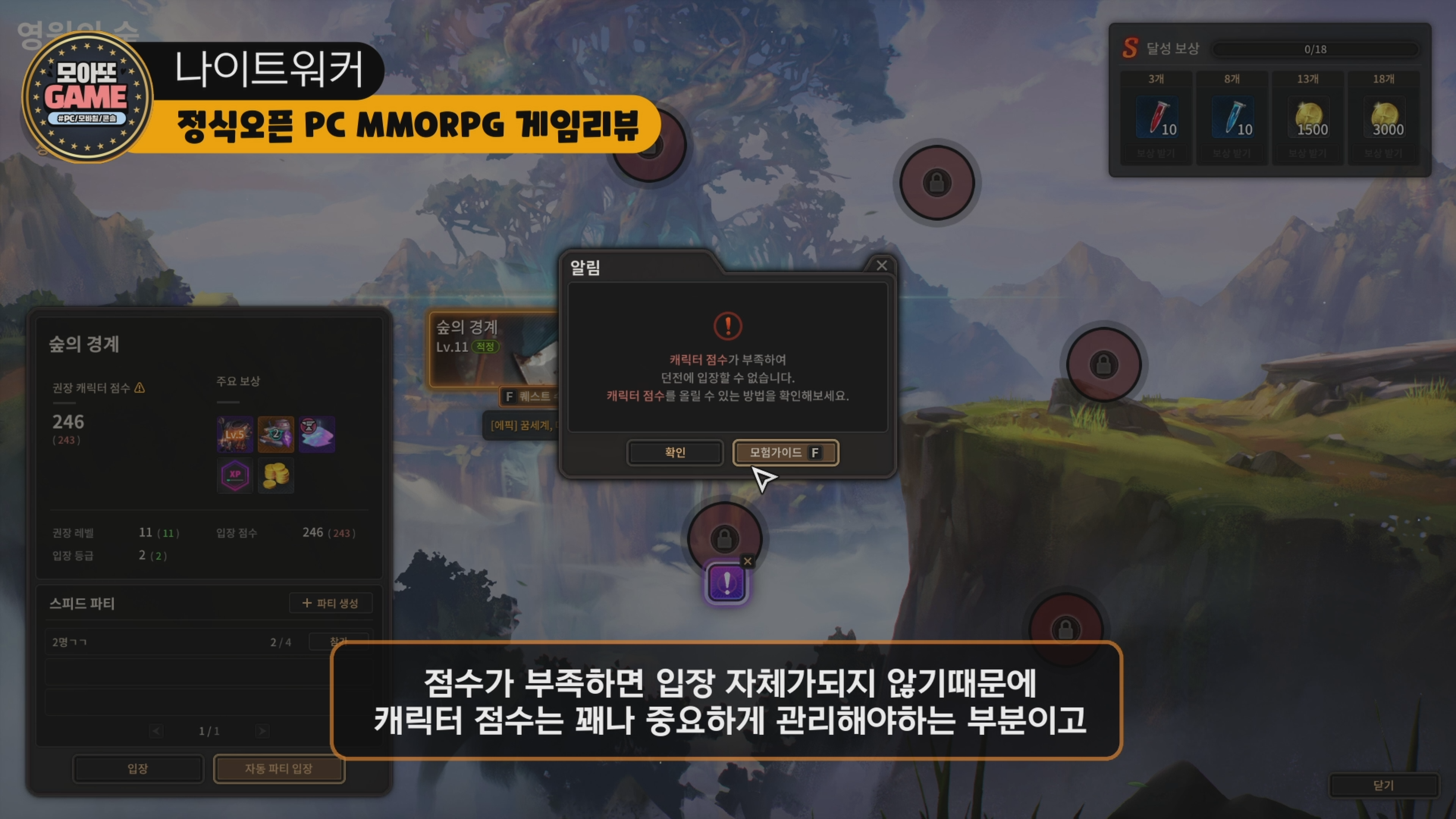 이게임을 하면서 컨트롤로 부족한 전투력을 메꿀수없는건가 ? 라고 생각했던 부분이 바로 던전 입장에 캐릭터 점수가 제한이된다는 부분이었는데요. 캐릭터 점수가 해당 던전에 못미치면 아예 입장을 못하기때문에 퀘스트가 있어도 진행을 못하고 손컨을 통해 어려운 던전을 깨곤 했던 다른 게임들의 경험을 여기선 할수없는건가라는 생각이들었습니다. 그만큼 캐릭터 점수가 중요하다는 이야기기도하지요.