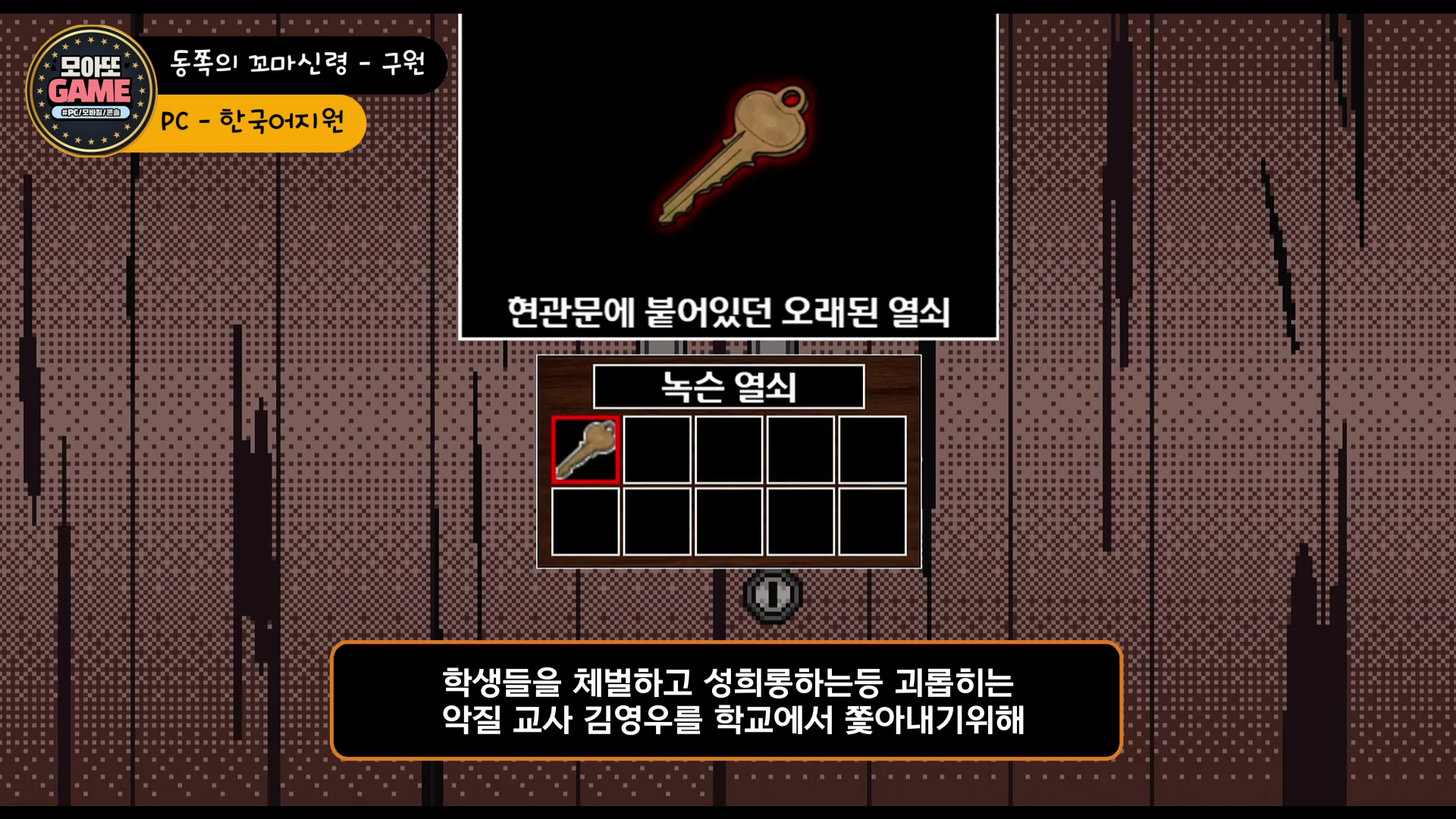밝혀내야 합니다.동쪽의 꼬마신령 -구원-은 2014년에 RPG MAKER VX로 제작된 동쪽의 꼬마신령을 리메이크한 게임입니다.본 게임은 3D 플러그인이 적용되어 마우스로 시점을 자유자재로 조절이 가능하여 기존 작품보다 음침한 구교사의 분위기를 즐기실 수 있습니다.