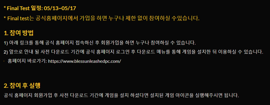 블레스 언리쉬드의 파이널 테스트 참여방법은