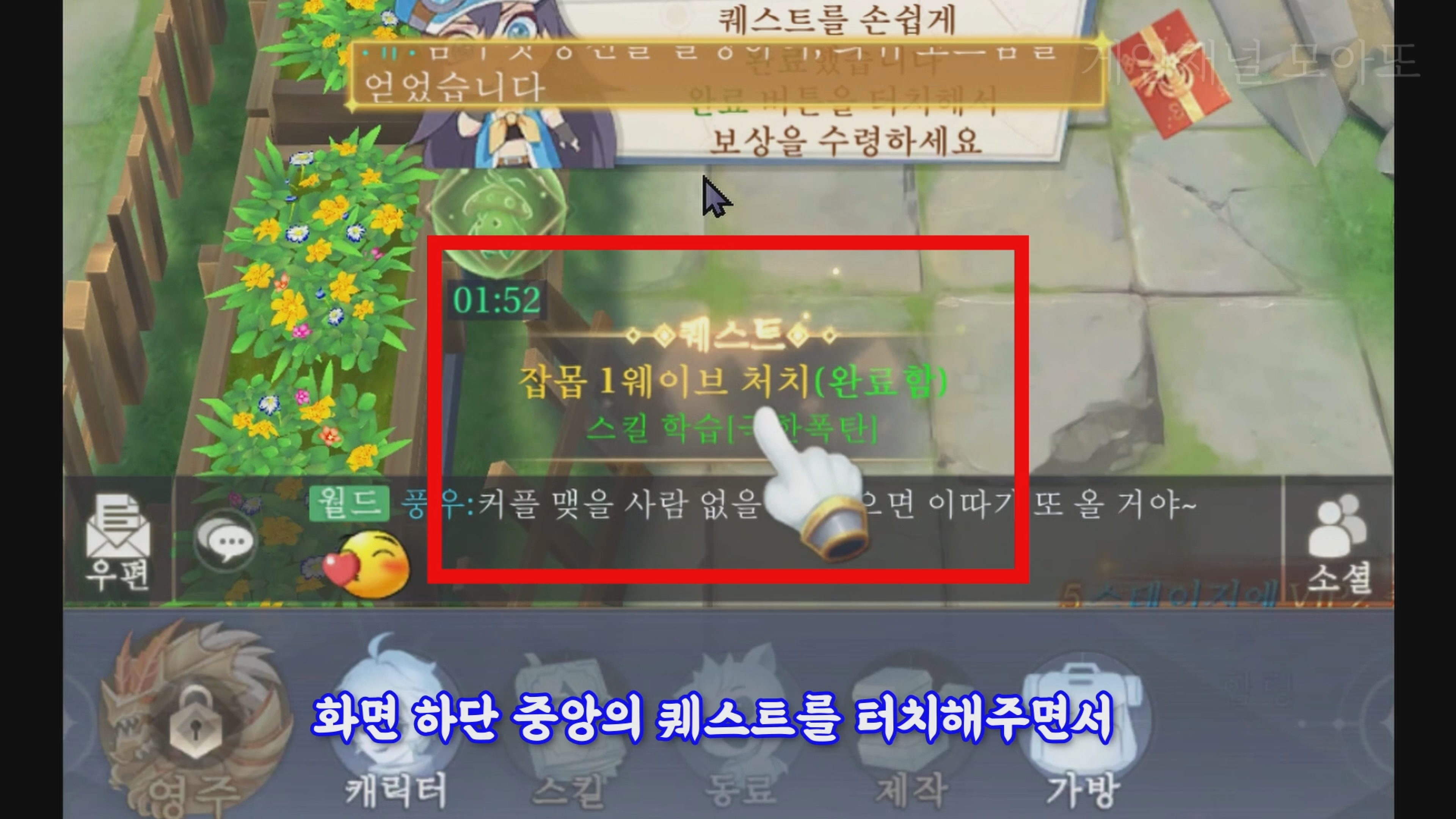 화면 하단의 퀘스트를 터치하면서 쭉 밀면되는게임으로, 스테이지를 건너가는 형태입니다. 방치형 시스템이 포함되어 게이지를 모아 한번에 소탕도 가능하고, 던전이나, 특수던전도 진행하게됩니다. 기본적으로 자동전투를 진행하지만 수동으로도 전투가 가능합니다. 하지만 굳이 수동 전투를 진행할 이유는 없어보이네요.