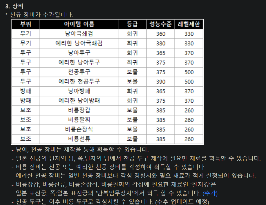 지역관련 사냥 도감 및 장비 도감이 추가되고