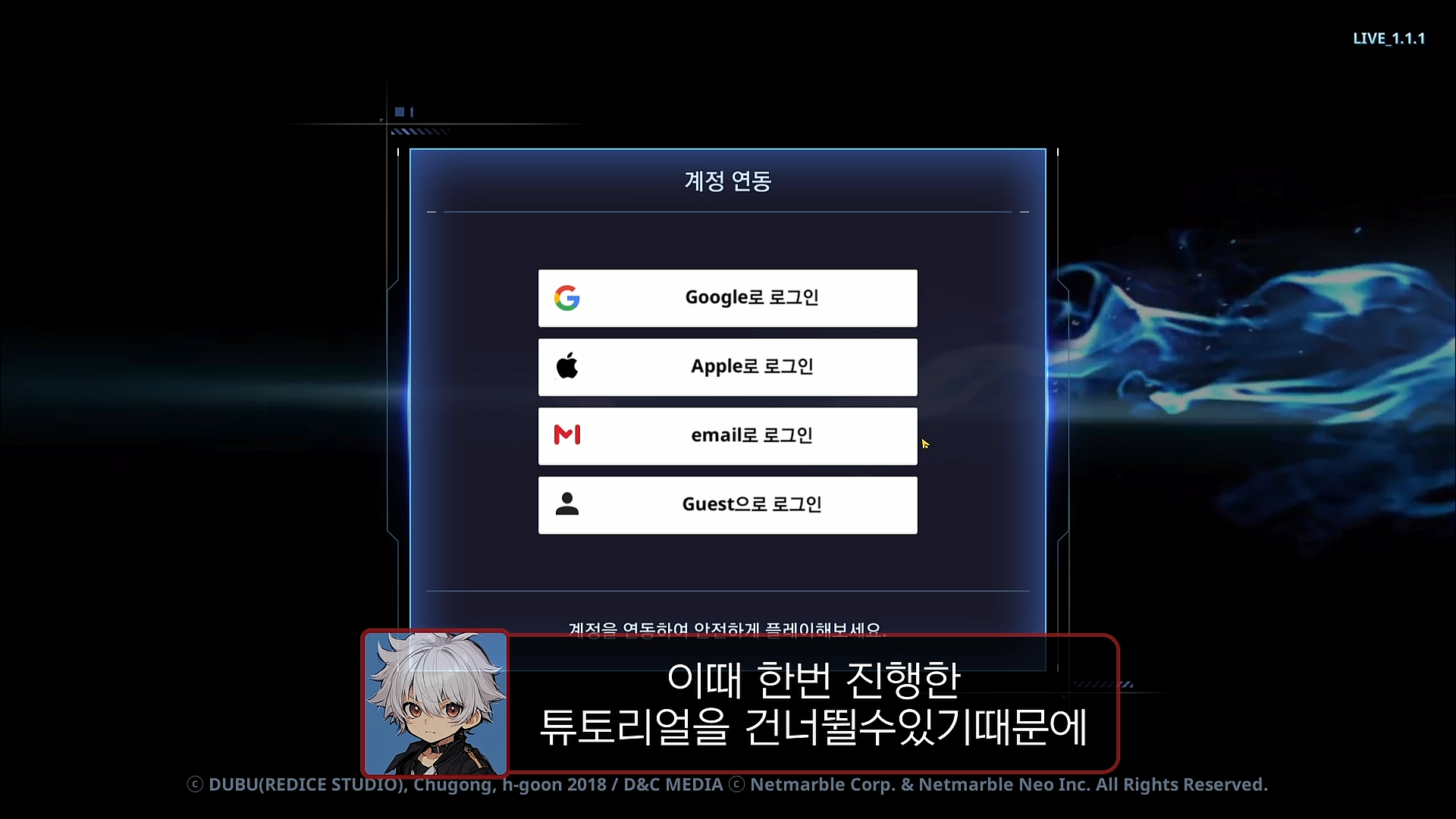 게스트계정으로 시작후, 초반 튜토리얼을 완료하면 이후 다시 리세마라를 할경우 튜토리얼을 건너뛰고 바로 뽑기를 시작할수있습니다. 다만 초반 로딩과, 입장시 출석보상등을 받는시간때문에 1분이 조금넘게 걸리게됩니다.
