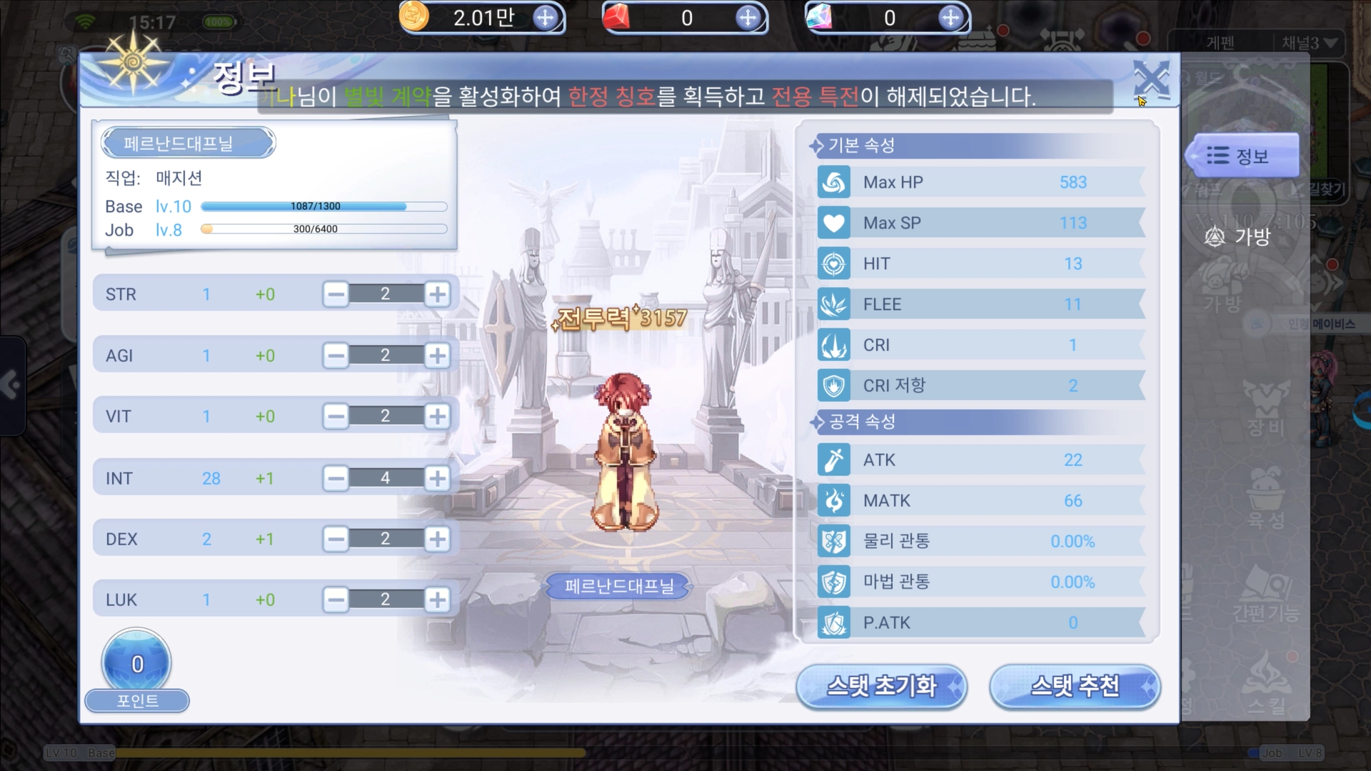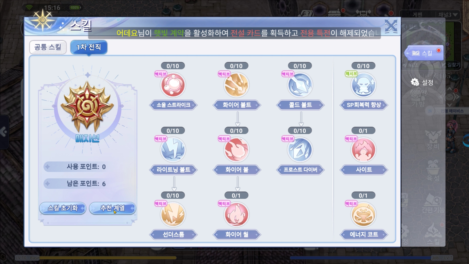 여섯개의 직업을 선택할수있고, 간단한 직업퀘스트를 통해 전직이 가능합니다. 과거에 라그나로크를 즐겨보셨던 분들께는 익순한 직업들이고 그당시 감성이 묻어나서 추억소환은 확실히 경험할수있는부분이었던같네요.