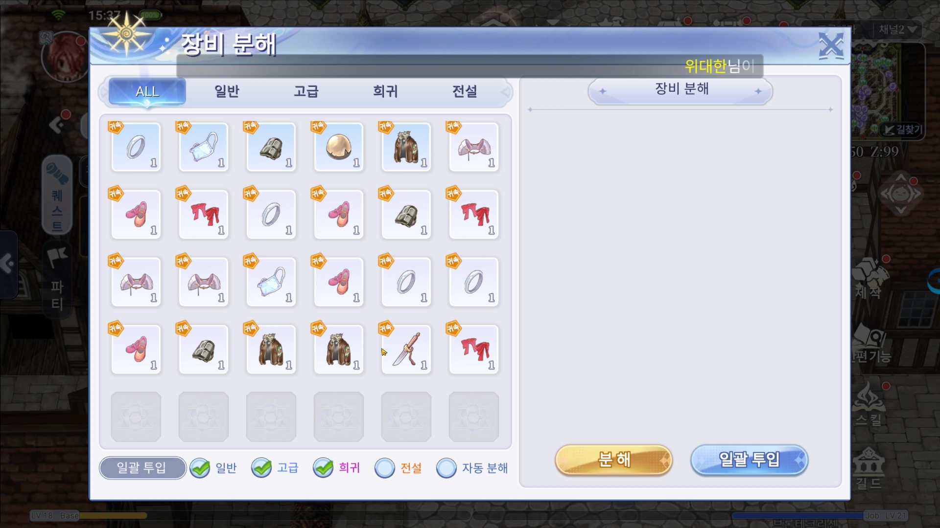 게임내 분해와 판매등 인벤토리에서 진행가능한 활동이 여럿있으며 잡템들을 매번 정리해야 하는등 불필요한 요소들이 상당수 존재해서 번잡하다고 느꼈습니다.