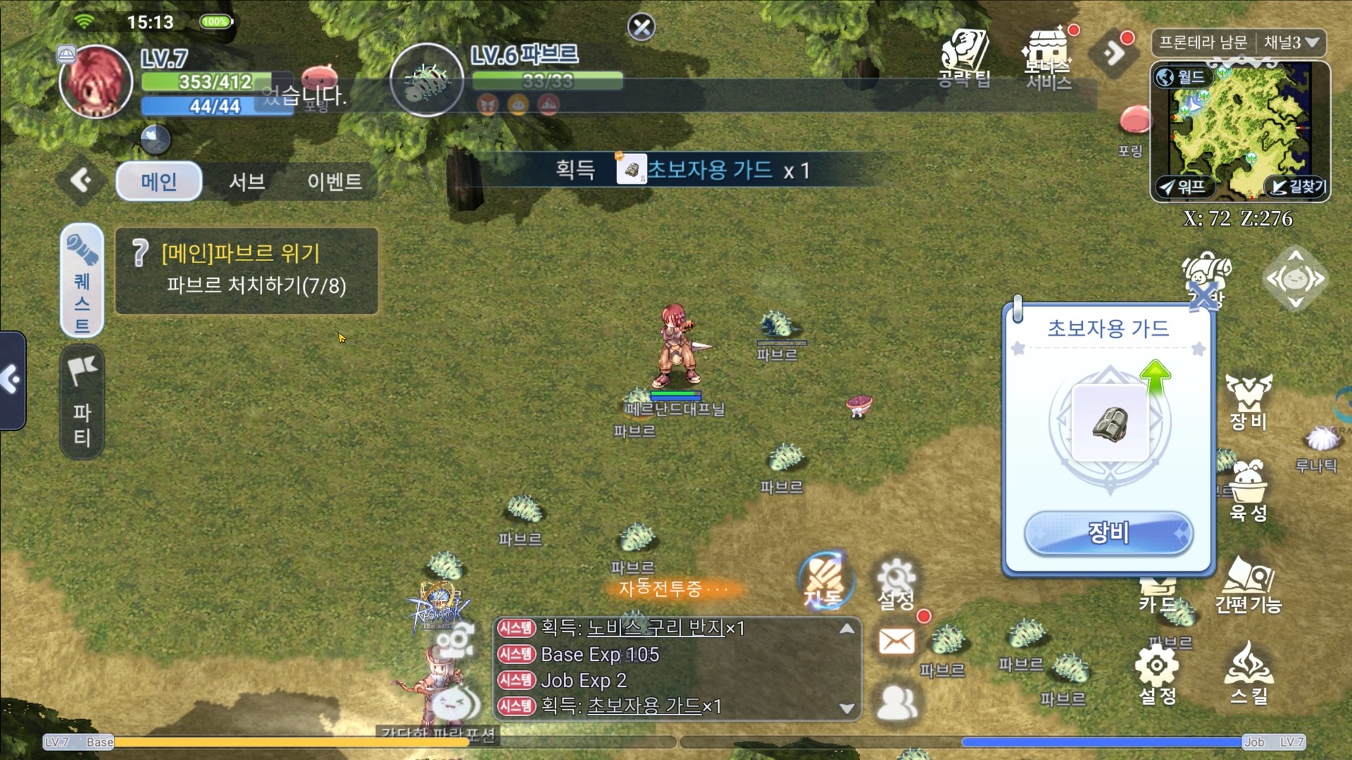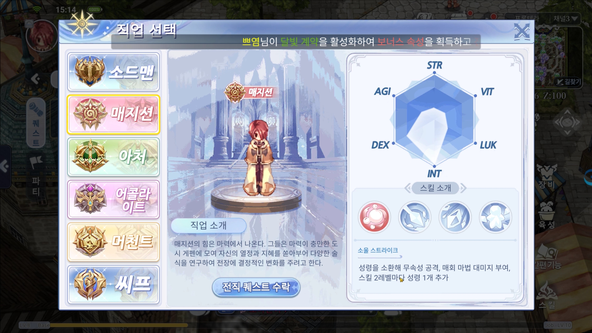 여섯개의 직업을 선택할수있고, 간단한 직업퀘스트를 통해 전직이 가능합니다. 과거에 라그나로크를 즐겨보셨던 분들께는 익순한 직업들이고 그당시 감성이 묻어나서 추억소환은 확실히 경험할수있는부분이었던같네요.