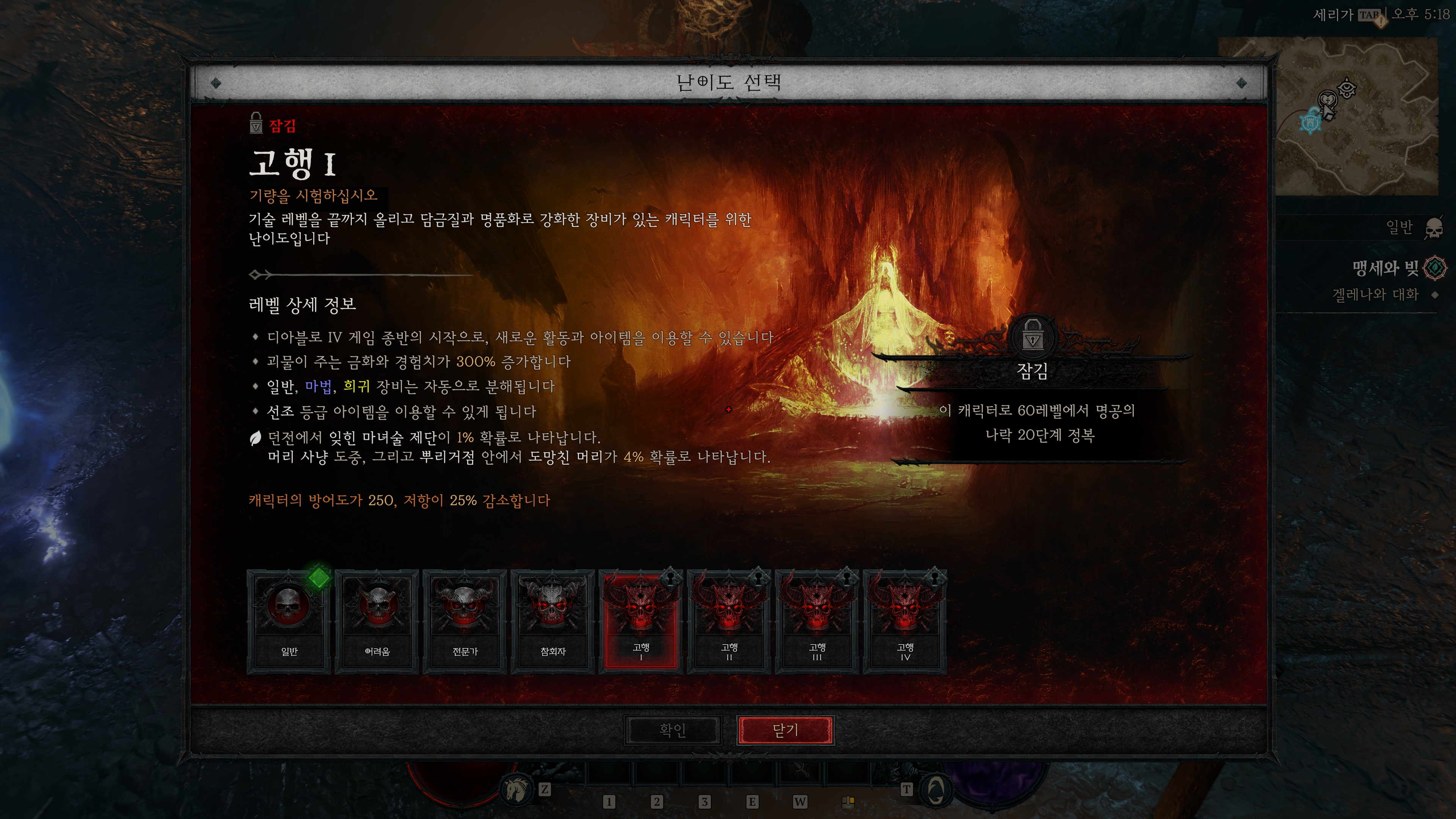 머리사냥 지역에서 파티를 통해 사냥을하시다보면 금방 60레벨이 되실건데요. 이제는 고행난이도로 진입하기위해 명공의 나락 20단계를 클리어해줘야합니다. 세리가로 이동하여 명공의 나락 20단계를 진행후 고행으로 넘어가셔서 엔드게임을 위한 파밍을 하시면됩니다.