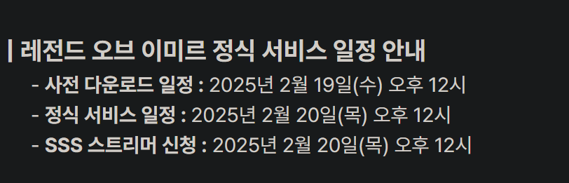 정식일정 시점은 2025년 2월 20일 오후 12시로 예정되어있습니다. 서비스 사정에 따라 변경 또는 연기될수있으니 참고하시기바랍니다.
