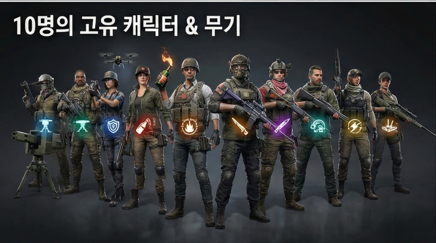 각 캐릭터는 단순히 스킨의 차이가 아니라 완전히 다른 플레이 스타일을 제시해요. 어떤 캐릭터는 공격적인 돌파에 특화되어 있고, 다른 캐릭터는 방어와 지역 통제에 최적화되어 있어요. 각자의 스킬과 장비, 팀 시너지를 극대화하며 상대보다 한 발 앞서는 전략을 펼칠 수 있어요.