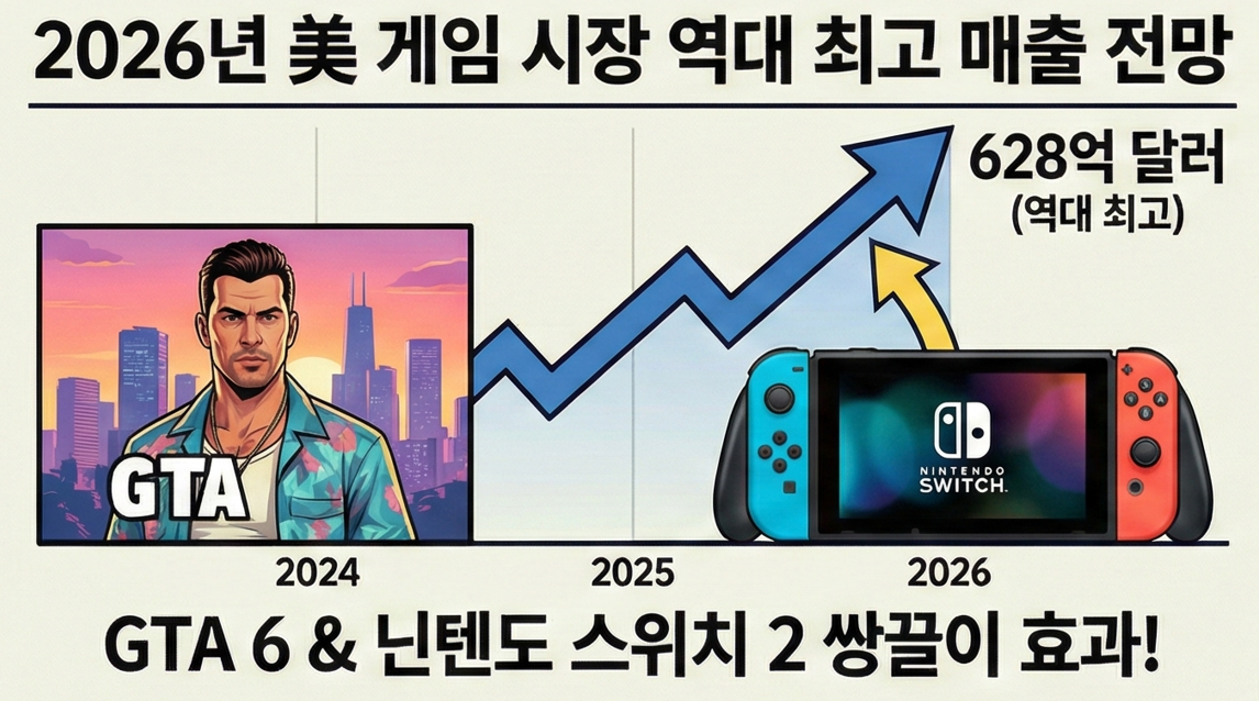 혹시 이런 생각 해보신 적 있으세요? "게임 시장이 대체 얼마나 크길래 이렇게 난리야?" 😄 사실 저도 처음에는 그냥 취미 시장이라 생각했는데, 알고 보면 영화 산업이나 음악 산업보다도 훨씬 큰 어마어마한 규모랍니다. 그리고 2026년, 이 시장이 드디어 역대 최고 기록을 갱신할 것으로 전망되고 있어요. 그 중심에는 두 가지 초대형 사건이 있는데요. 바로 GTA 6와 닌텐도 스위치 2입니다! 오늘은 이 둘이 어떻게 판을 흔들고 있는지, 쉽고 재미있게 풀어드릴게요 🎯