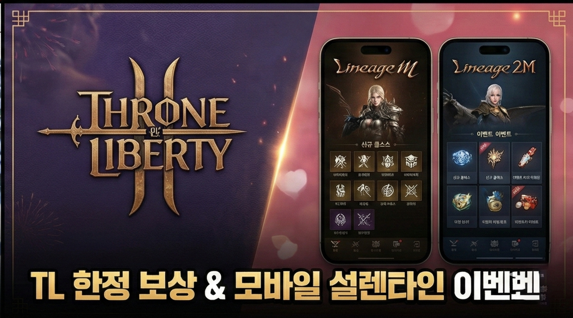 리니지2M은 2월 25일까지 독특한 '설렌타인 시즌 위크' 이벤트를 해요. 설날과 발렌타인데이를 동시에 즐기는 컨셉이에요! 게임 내 상점과 시즌 패스 보상에서 '설렌타인 초콜릿'을 모으고, 이벤트 1인 던전 '새해 복맞이 동산'에서는 '설렌타인 찹쌀떡'을 모아서 이 두 가지를 합치면 '설렌타인 초콜릿 찹쌀떡'을 만들 수 있어요. 이걸로 한복을 입은 신규 클래스 '킴 케이'(영웅)와 '리버티 라이도'(희귀)로 교환할 수 있답니다. 또, 2월 17일 오후 6시에는 모든 이용자에게 우편으로 설날 특별 아이템도 제공되니 꼭 확인하세요!