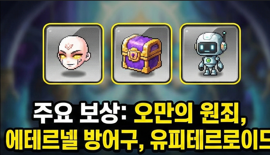 주요 처치 보상은 신규 광휘의 보스 장신구 '오만의 원죄(얼굴장식)', '갈망의 에테르넬 방어구 상자', '유피테르로이드' 등의 아이템으로 구성돼요.