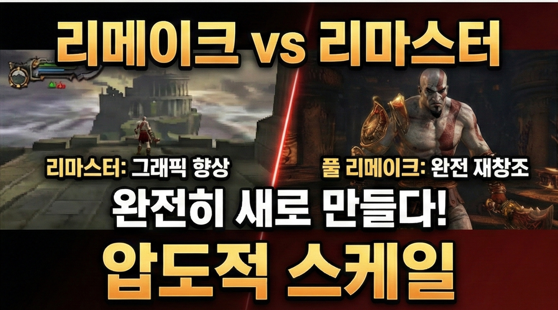 이번에 발표된 갓 오브 워 트릴로지는 풀 리메이크예요. 갓 오브 워 1편은 이전에 두 차례나 리마스터가 된 적이 있었지만, 오래된 작품이라 신규 유저들이 접근하기 어려웠다는 점에서 이번 완전 재제작은 정말 의미 있는 결정이라고 할 수 있어요!