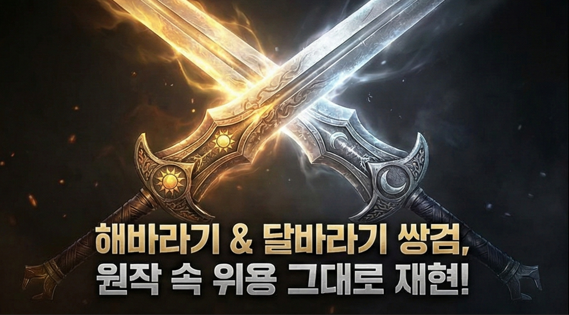 ⚔️ 해바라기 & 달바라기란? 이영도 작가의 소설 『눈물을 마시는 새』 속 영웅왕이 사용하는 한 쌍의 검이에요. 해(태양)와 달을 상징하는 이름처럼, 서로 대비되면서도 완벽히 짝을 이루는 무기예요. 이 쌍검이 트레일러에서 시각화된 것은 원작 팬들에게 굉장한 선물 같은 장면이었답니다!