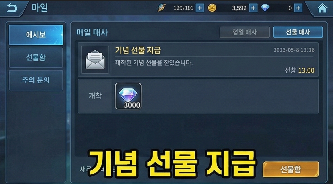 💡 꿀팁! 신규 유저라면 튜토리얼 종료 후 선물함을 꼭 확인하세요. 놓치면 사라질 수 있어요!