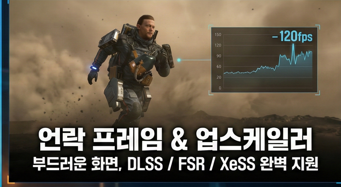 어느 회사의 그래픽카드를 쓰든 최적화 혜택을 받을 수 있도록 배려한 점이 참 좋죠? 중급 사양의 PC를 가진 분들도 업스케일러 덕분에 훨씬 쾌적하게 즐길 수 있을 거예요.