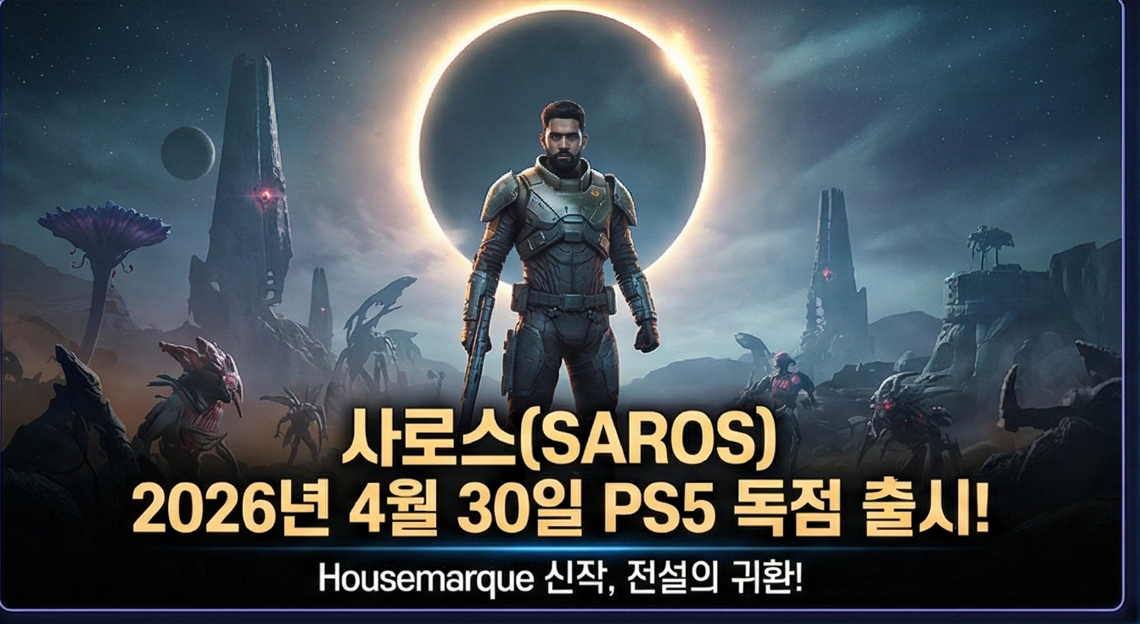 PS5를 갖고 계신 분들 주목해 주세요! 😮 리턴 어(Returnal)를 개발했던 전설의 스튜디오 Housemarque가 돌아왔어요. 바로 신작 사로스(SAROS)인데요, 2025년 2월 PlayStation State of Play에서 처음 공개된 이후 팬들의 기대를 한껏 받아온 게임이에요. 그리고 드디어 2026년 4월 30일 PS5 독점 출시가 공식 확정됐답니다!