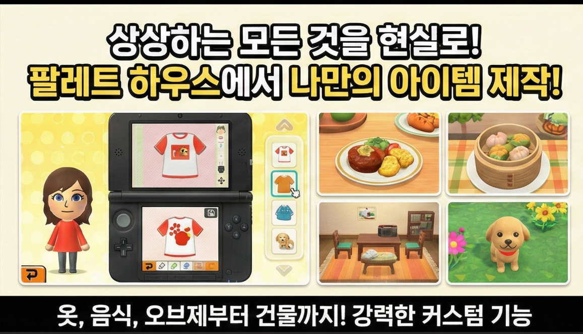 💡초보자 팁! 팔레트 하우스는 처음엔 복잡해 보일 수 있지만, 간단한 색칠부터 시작하면 금방 익숙해져요. 좋아하는 캐릭터 로고나 귀여운 패턴을 만들어 Mii의 옷에 입혀보는 것도 재밌는 놀이가 될 거예요!