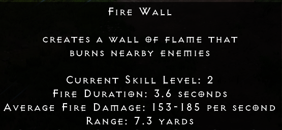 소서리스는 이 주문을 이용하여 공격받는 소서리스의 측면을 완벽하게 차단함으로써 그녀 자신이나 혹은 그녀의 동행 구성원에게 전술적인 이점을 가져다주는 화염의 장벽을 세운다. 자신도 모르게 이 장벽을 넘으려하는 적인 즉시 화염벽의 힘을 느끼게 될 것이며, 곧이어 죽음을 맞이하게 될 것이다.