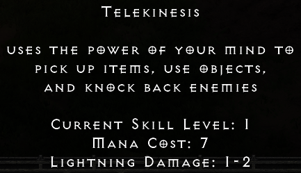 이 마법을 이용함으로서 소서리스는 자신의 마음의 의지를 멀리까지 뻗어낼 수 있으며, 멀리 떨어진 목표물을 조종할 수 있다. 세상에 충만한 에테르층을 조종함으로서 그녀의 손 밖에 있는 아이템을 끌어올 수 있으며, 멀리 떨어진 적에게 공격을 가할 수도 있다. 꾀가 많은 소서리스에게 유용한 이 기술은 앞으로 일어날 대부분의 기회에 대해 빠른 판단을 할 수 있게 도와준다.