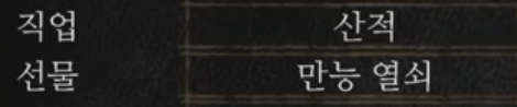 초반에 캐릭터 생성시에 직업은 산적(배틀엑스) 선물로는 만능열쇠를 선택해주시는게 초반에 게임을 진행하시는것도 편하고 후반을 생각해도 가장 합리적인 선택이되실거에요. 스토리를 진행하면서 여러 선택지로 얻게될 열쇠를 만능열쇠가 대신하여 게임진행이 한결수월해지기때문에 만능열쇠는 초보자분들은 필수로 선택해주시는걸 추천드립니다.