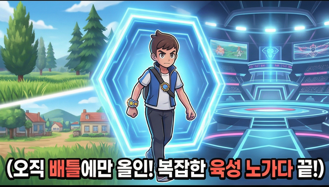 포켓몬 대전의 가장 큰 진입 장벽이 뭐였는지 떠올려보자. 개체값 맞추기, 노력치 배분, 성격 고르기, 교배기 유전 같은 것들. 본가 시리즈에서는 실전용 포켓몬 한 마리를 제대로 만들려면 시간이 어마어마하게 들었다. 그래서 라이트 유저들은 배틀에 관심이 있어도 쉽게 발을 들이지 못했다.
