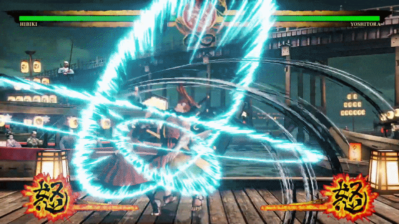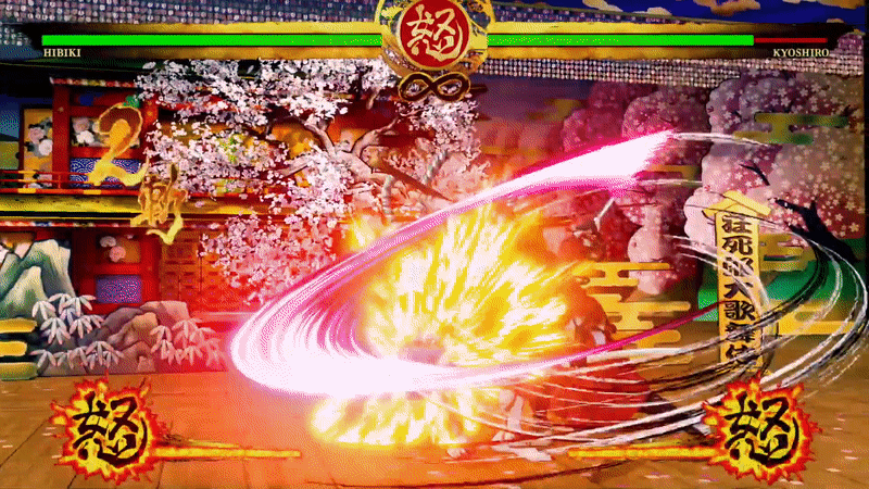 그래서 히비키는 절단 피니쉬 성공 여부에 따라 엔딩 내용이 달라지는데 인연대결 직전인 6스테이지까지 모두 절단 피니쉬를 성공시키면 앞 스테이지까지는 "아니야, 아닐거야…."라는 대사와 함께 멘붕하면서 울먹이던 결정 승리 포즈가 전혀 달라지면서 "약하니까, 그렇게 되는 거야."라는 대사를 말한다. 승리 메시지에도 이런 변화에 대한 암시가 주어지는데 절단 피니시 성공 횟수가 늘어날수록 "이럴 수밖에… 없었다구요! 어쩔 수 없잖아!!!"(こうするしか…なかったのよ!仕方ないじゃない!) "이제는 싫어! 이상해질 것 같아…."(もうイヤ!おかしくなりそう…), "이제는… 익숙해졌어…."(もう…なれたわ…) 등으로 서서히 바뀐다. 이 상태로 엔딩을 맞으면 겐조의 묘 앞에서 '그 사람(세츠나)에게 더 가까워지고 싶다' 면서 썩소를 짓는 살인 검사로 눈뜬 모습이 그려진다. 격투 게임 치고 분기 엔딩이 많았던 월화의 검사 엔딩 중에서도 제법 화제가 되었던 내용. 참고로 아카리는 지상 한정이지만 절단당할 때는 식신을 미끼로 써서 도망가기 때문에 사람을 죽인것도 아닌데 충격받는 웃기는 장면이 나온다.
